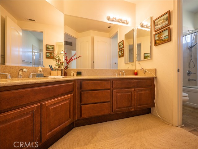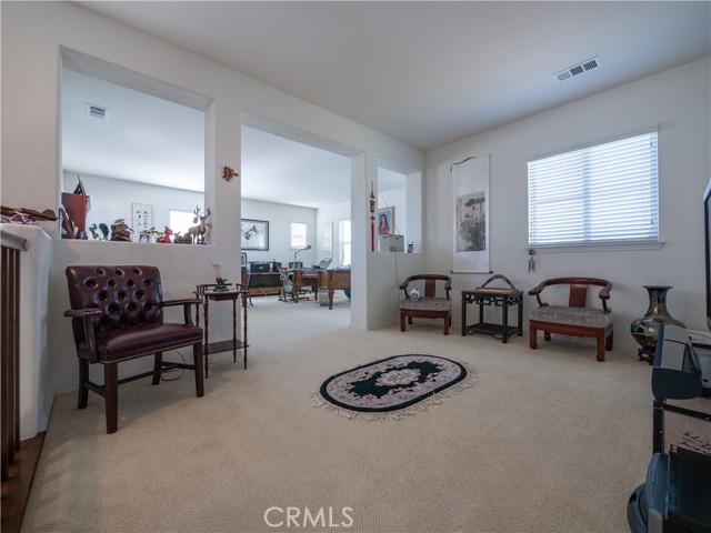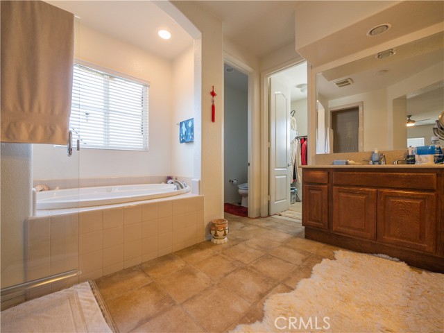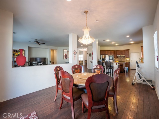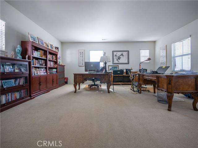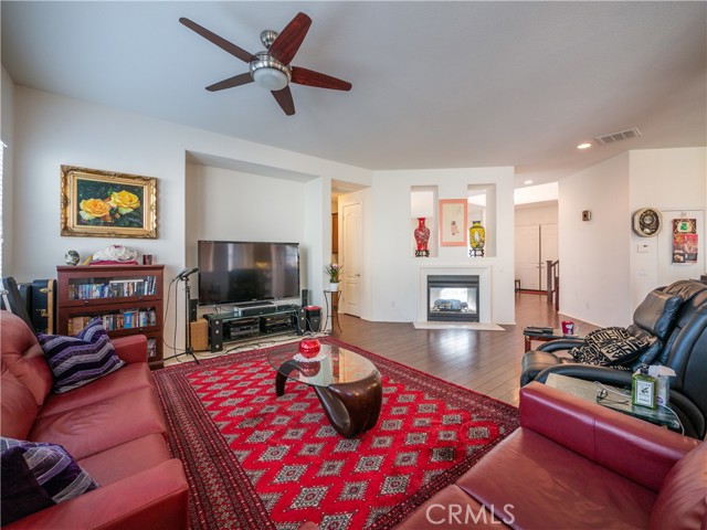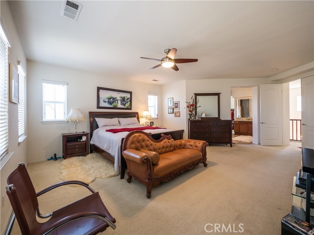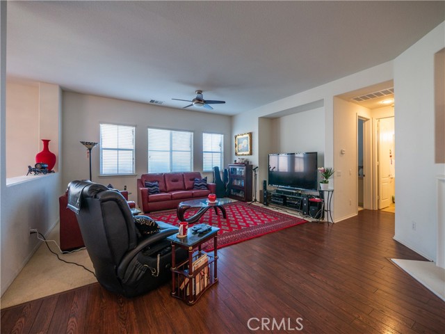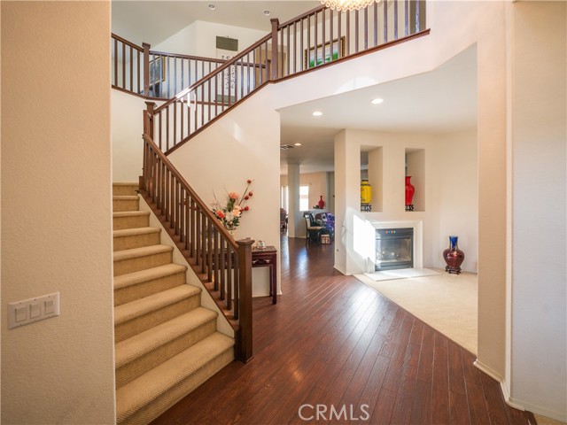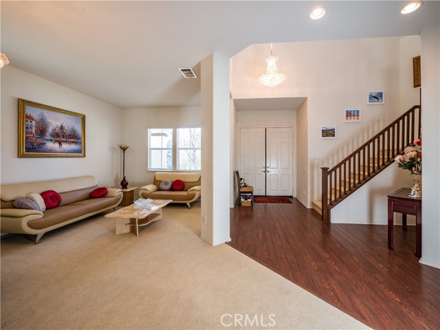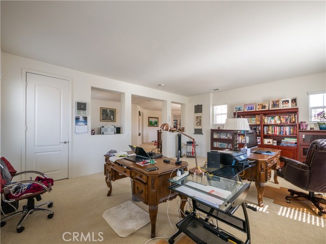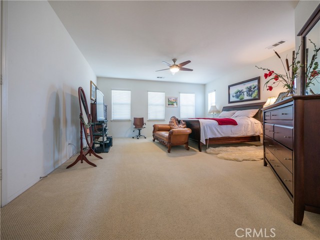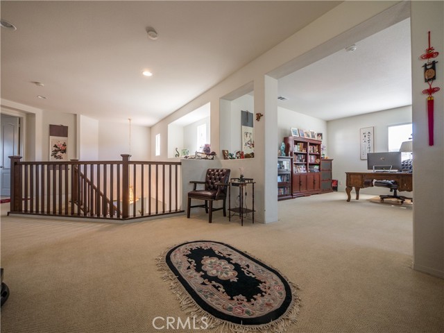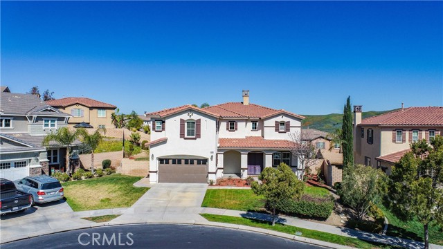 Highly sought after KB Plan Three home. One bedroom and one bathroom downstairs and 3 bedrooms and 2 full baths upstairs, plus large dual office suite, or it could be a great theater room. Large pool size yard. Located on the end of a quite cul-de-sac with views of the mountains. Enter to sweeping high volume ceilings. Large gourmet kitchen with new upgraded range and oven. One of the 2 AC units is also new. New garage door opener. New exterior paint. New water heater. Located in the Retreat -- the inland empire's premiere 24-hour manned gated community.