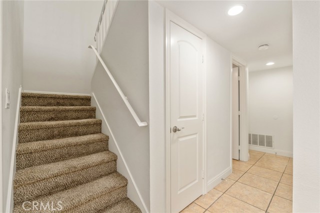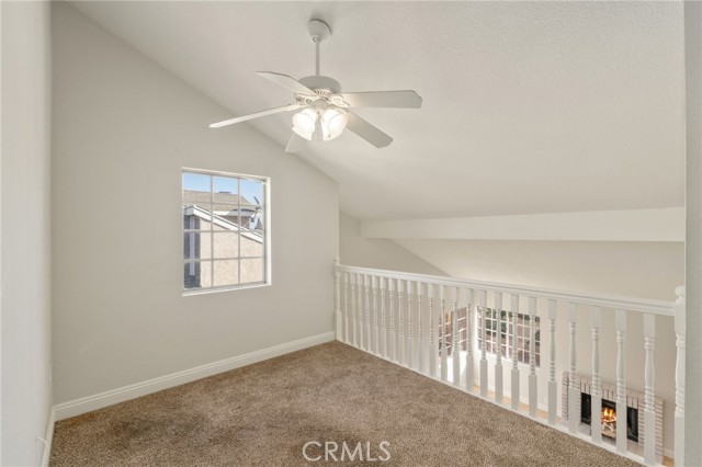 This fabulous 3 bedroom plus Loft home has vaulted ceilings, tile floors, LED canned lighting, and a white washed fireplace with a main floor bedroom peffect for guests or inlaws. The kitchen features granite counters, stainless appliances and a floor plan that opens up to the living room.The down stairs bedromm features a built in work station and a full sized bathroom. Upstairs the Master Suite features a dual sink en-suite bathroom with 2 closets including an oversized walk in closet plus mirrored closet doors and a cieling fan. Also included is an additional secondary bedroom as well as a bonus loft that can be used as an open office or family room or play area. Garage has an abundance of storage. Outside you will find a nice sized patio that is private and covered for outdoor meals or entertaining. Recently painted with new carpeting, new shower doors , new mirrored closet doors and light fixtures and much more. The Santiago Townhomes Community features a pool, jacuzzi and a park with a childrens playground . Located in a neighborhood that is freeway close with great access to shopping. This convenient location is just 5 miles from Orange County right off the 91.