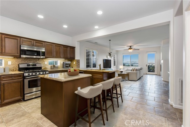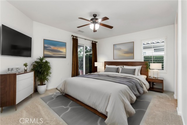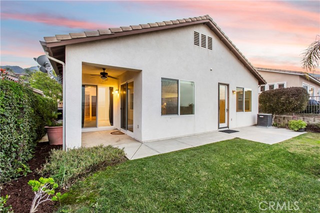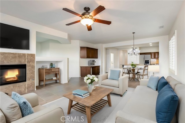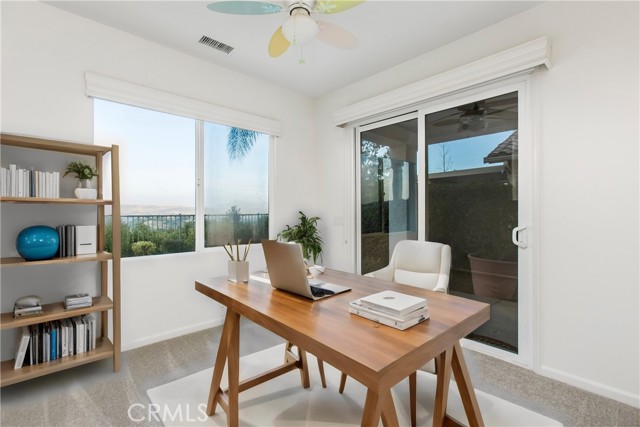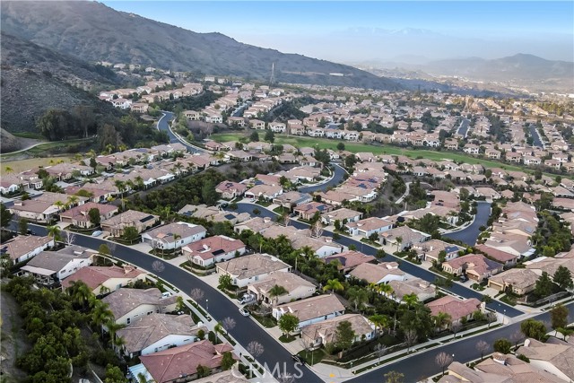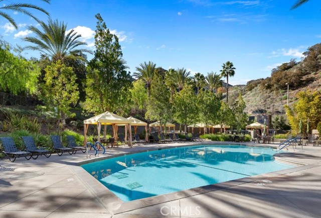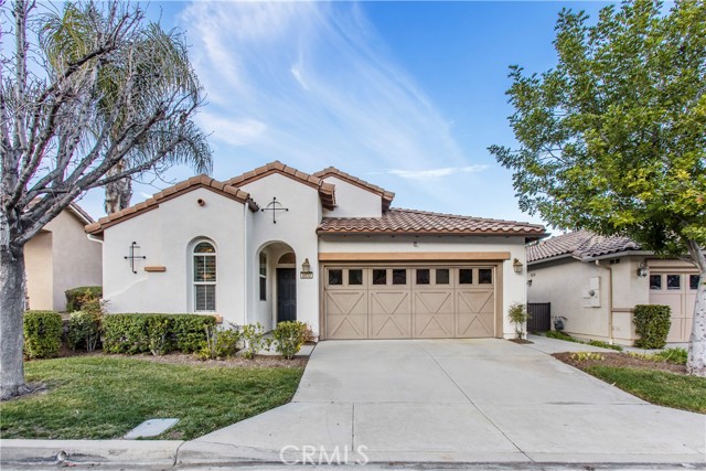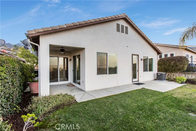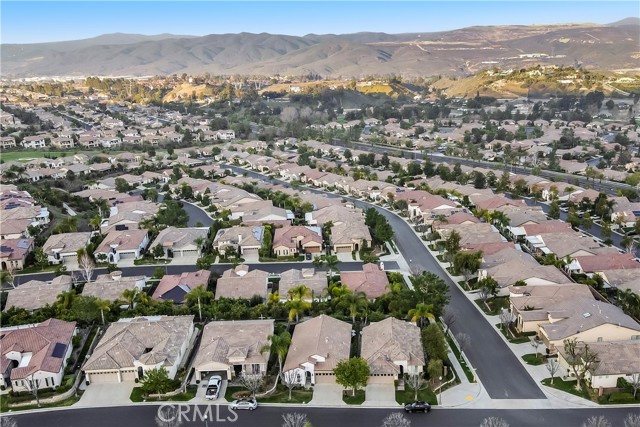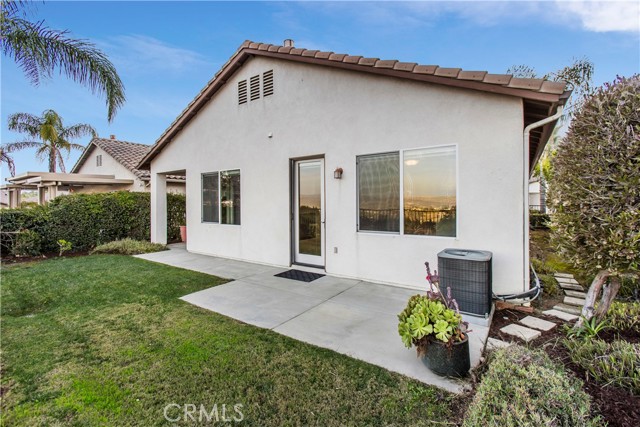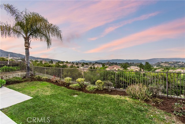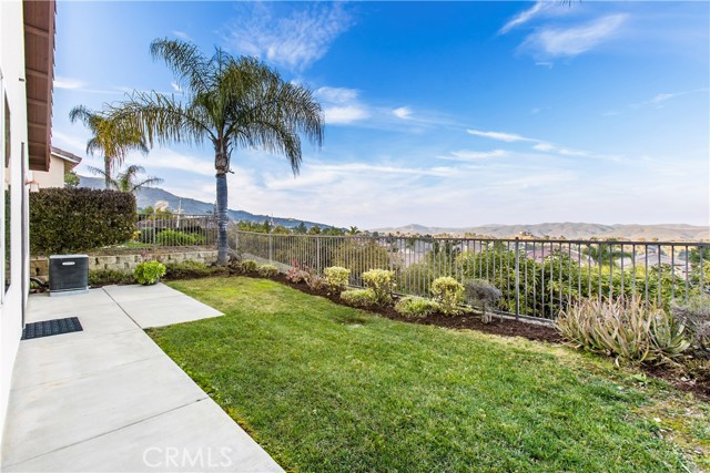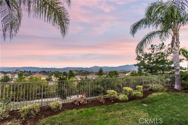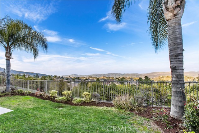 Welcome to Trilogy at Glen Ivy, a luxurious 55+ gated community by Shea homes. This highly sought after community is nestled in the hills of Saddleback Canyon, surrounded by the majestic views of the Cleveland National Forest. Beautifully upgraded single-story sits on a premium lot with a heart-opening panoramic view that will take your breath away. 2 bedrooms, 2 bathrooms, and a flex room for an office, dining area, or creative space. As you step inside, you will be immediately greeted by the raised ceiling and the stunning backyard view seen through the living room windows. Fresh paint and newly installed carpet, open layout with natural lights. The upgraded kitchen features recessed lighting, ceramic tile flooring, timeless mahogany wood cabinets with pull-out drawers, granite countertops and a backsplash. The stainless steel appliances, charming island, and expansive breakfast bar connects to the living space with built-in desks and cabinets, a cozy fireplace, entertainment center nook. The primary bedroom offers a stunning view and an en-suite bathroom with a walk-in closet, double vanity sink, cabinet and direct access to the backyard. The second bedroom with a gorgeously upgraded bathtub with a sliding door, perfect for accommodating guests with privacy. The flex room, with a view and sliding glass door provides access to the backyard. The backyard with a breathtaking view, palm trees, vibrant grass, and hardscape outdoor sitting area combined with a variety of plants, creates a tranquil oasis. A convenient and functional laundry room with a utility sink and built-in storage cabinets. The attached 2-car garage, with generous built-in storage cabinets, has a door that leads to the side yard. Trilogy at Glen Ivy's amenities includes the Blue Water Sports Club, with its high ceiling Olympic-sized indoor pool and walking track overhead, is the perfect place to stay active all year round. The outdoor resort-style pool, with cabanas, a fireplace, BBQ area, an amphithere under the star concert and various clubs and activities organized by the community, allowing residents to socialize and connect with their neighbors.