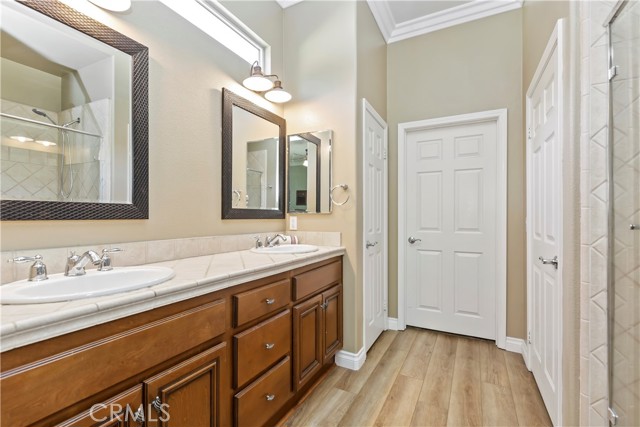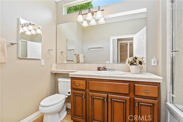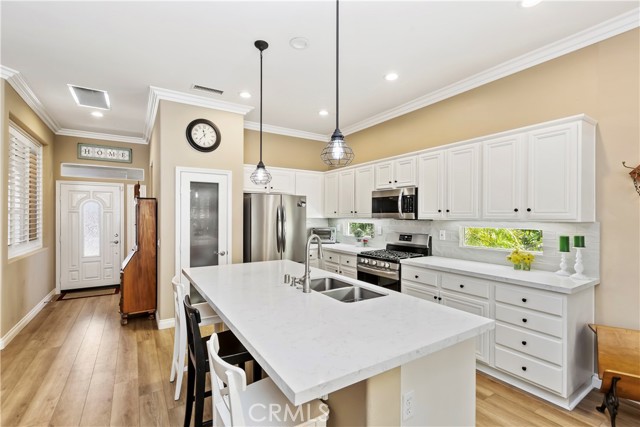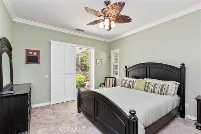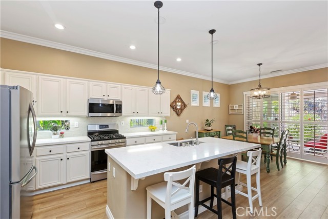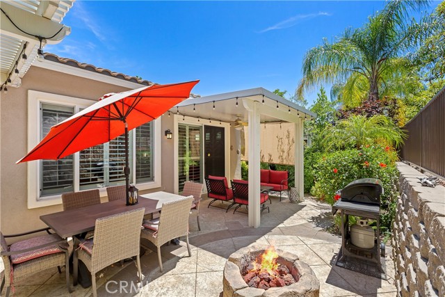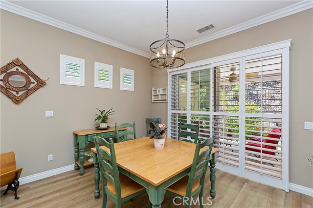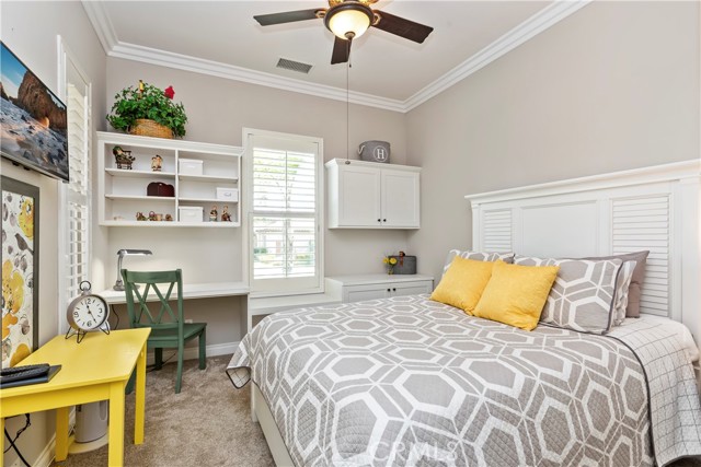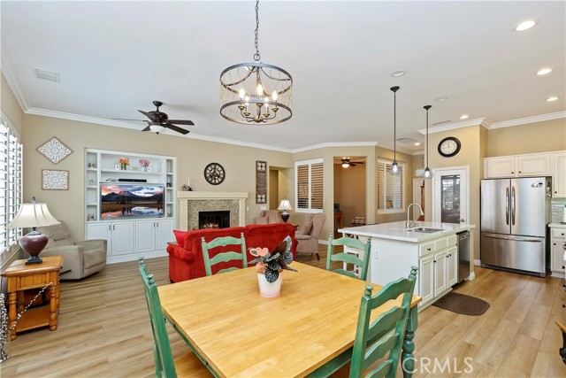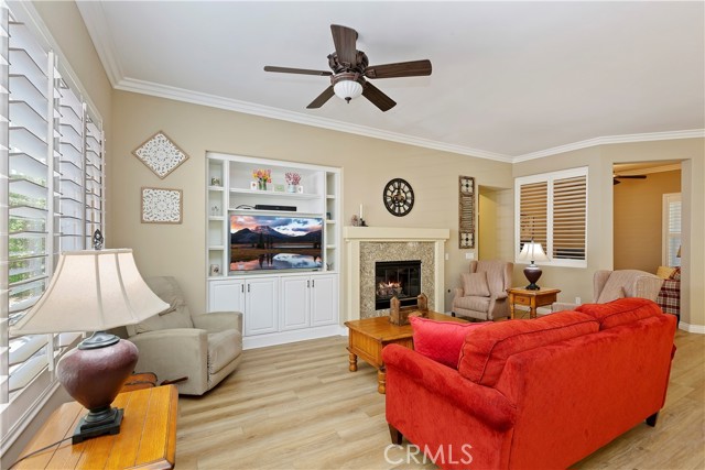 Highly Upgraded Inaja Model at Trilogy at Glen Ivy 55+ gated community surrounded by the Ted Robinson designed regulation Golf Course. This remodeled floor plan shows like a model home and features: Newer Kitchen with all newer appliances, white cabinets, Quartz Countertops, newer sink and faucet. Custom plantation shutters throughout the home. Newer interior and exterior paint. Crown Moulding. Newer vinyl flooring throughout. Sliding screen at front door. Epoxy garage floors and garage cabinets. Two rear patio covers. HOA Amenities galore! Front yard maintenance included in HOA dues.