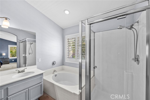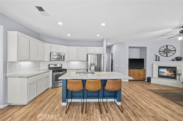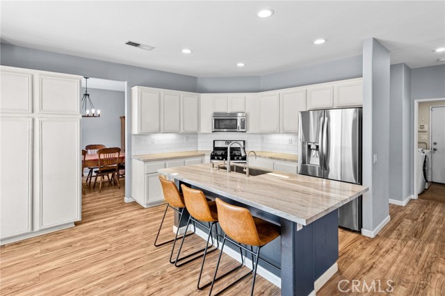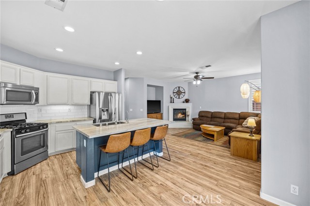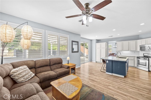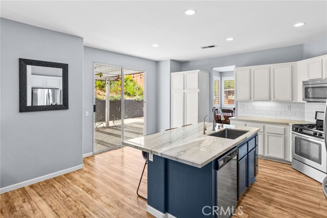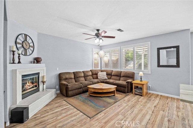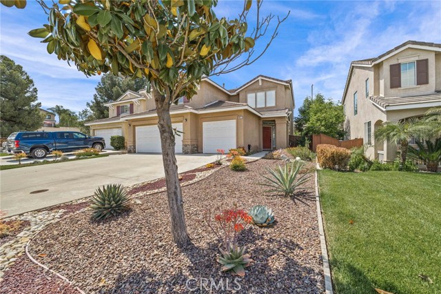 Welcome to Wildrose Ranch, a desirable neighborhood in the heart of Temescal Valley, Corona! This 4 bedroom, 3 bathroom, Cul-de-sac home 2-story is perfect for anyone looking for elegant, spacious & comfortable living. The high ceilings & sidelight windows as you enter the living room & dining area, provide great natural light! The Upgraded Kitchen & Open Floor Plan are just the beginning of luxuries that make this home special! The metamorphic rock Quartzite counter tops, subway tile backsplash, large island breakfast bar & abundant cabinet space enhance this gem! The family room & auto-igniting fireplace, share the openness of the kitchen! Beautiful Newer plantation shutters are on all windows! The downstairs bedroom & bathroom with a walk-in shower, are perfect for guests or stair-resistant folks! Upstairs, the primary bedroom has an attached ensuite bathroom with a soaking tub & separate shower. The huge walk-In closet is sure to be enjoyed! The large loft bonus room is perfect for movie night, extra guest space or a huge 5th bedroom! The newly updated & upgraded hall bathroom is shared with 2 additional roomy bedrooms! All bedrooms upstairs have ceiling fans! The home has recently been painted thru-out. Elegant newer vinyl tile flooring is downstairs, carpeting & tile are upstairs. Step outside onto your large covered patio & enjoy the peaceful & private backyard. Water conserving native landscaping Front & Back! The 3-car garage is perfect for parking & also has plenty of storage & workspace! Low HOA & taxes! The recreational community park is just a few blocks away, surrounded by amazing views of the Cleveland National Forest. Close to shopping, restaurants & entertainment at nearby Dos Lagos, the Corona Crossings & Tom’s Farms. Check out the aerials & 3D Tour! Don't miss out on this opportunity to call this beautiful Wildrose Ranch community home.