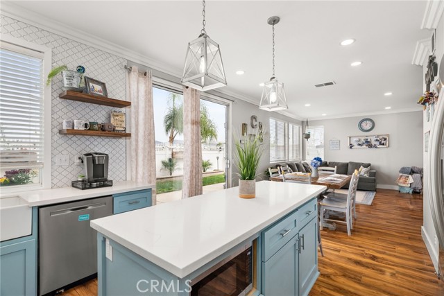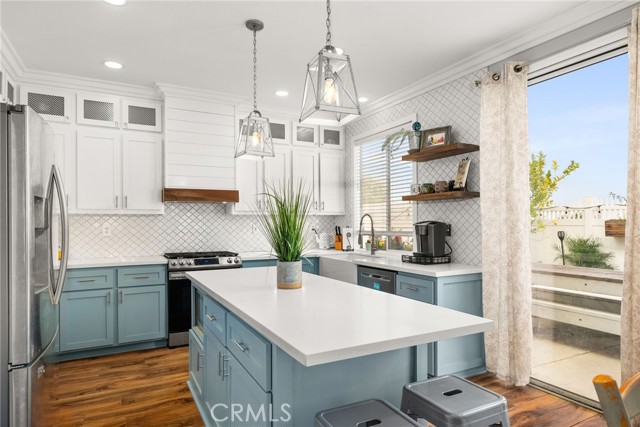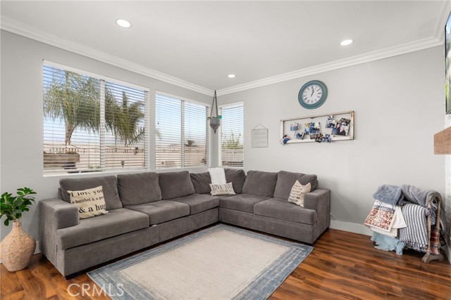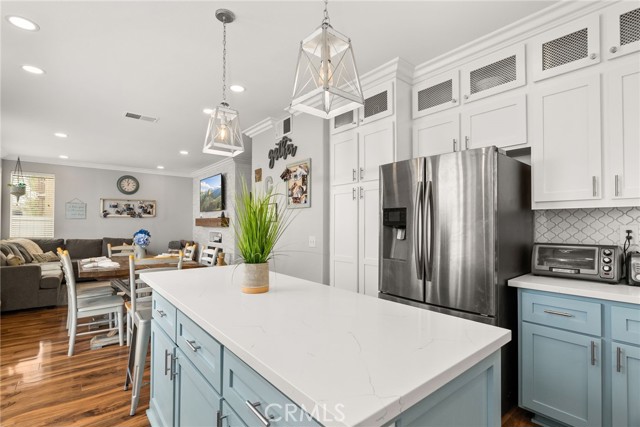 Welcome to your dream home in the heart of Corona! This stunning 5-bedroom, 3-bathroom view home is nestled in a tranquil cul-de-sac, offering a perfect blend of elegance and modern comfort. Immerse yourself in the allure of this meticulously upgraded home, where every detail has been carefully curated for a luxurious living experience. New paint, both inside and out, creating an inviting atmosphere throughout. The entrance features new custom hand rails, showcasing a seamless transition to the upper level. The ground floor boasts a beautifully renovated bathroom adorned with complete shiplap, mosaic floors, a barn door, and a thoughtfully added shower. The adjacent bedroom exudes warmth with shiplap wall treatment, rustic stained shelves, crown molding, large baseboards, and custom cabinets for seamless storage. Enjoy this newly crafted kitchen, a culinary haven boasting floor-to-ceiling cabinets, a 7-ft island, and custom shiplap detailing. The elegant backsplash wraps around the entire space, complementing the quartz countertops seamlessly. The living room is a masterpiece with a stacked stone feature wall housing an electric fireplace and component niche. Crown molding gracefully flows throughout the entire downstairs, accompanied by large baseboards. Illuminate your space with all-new recessed lights in the living room, dining room, and kitchen. Maximizing functionality, storage has been cleverly designed under the stairs, with a new pantry featuring shiplap detailing and a rustic antique door—a charming touch to the heart of the home. Indulge in the lavish retreat of the master bedroom with a breathtaking view. The primary bathroom, features a brand new large walk-in shower, dark blue cabinets, a white quartz countertop, exquisite faucets, a custom mirror, and mosaic flooring. The secondary bathroom echoes this opulence with a dark blue vanity, white quartz countertop, custom mirror, and a newly glazed shower enclosure. In the hallway you'll find custom oversized storage linen cabinets with a custom wood top that lead to a spacious bedroom with a breathtaking view of the hills. This room is thoughtfully designed with custom 14-ft cabinets, two desk areas, and a Murphy bed—a versatile space that combines functionality and aesthetics. This home is a true masterpiece, blending modern conveniences with timeless elegance. Don't miss the opportunity to make this exquisite property your forever home. Welcome to the perfect family home in Corona!