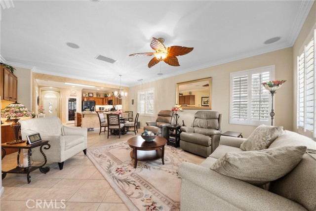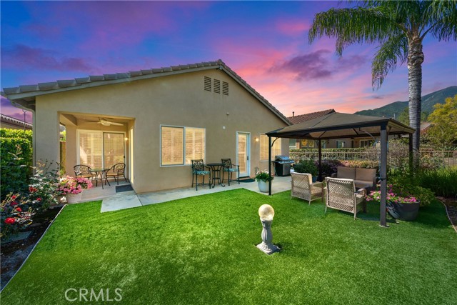 WELCOME HOME! To this Stunning 1-Story in Trilogy at Glen Ivy a highly sought out 55+ community. Gorgeous kitchen with granite countertops, center Island with skylight, breakfast bar. Roomy Dining Area. Large Great Room with natural light throughout a cozy fireplace and shutters throughout. The den can be an office or even enclosed for a bedroom. Spacious Master Bedroom has sliding glass doors leading out to a covered patio which can be enclosed. Master Bath features granite counters & granite large walk-in shower and a walk-in closet. The Private Guest Suite has an adjacent bath with a tumbled stone counters,tub & shower. The Laundry has plenty of cabinets/storage and sink. 2 car garage with tons of storage. The backyard is a beautiful oasis fully landscaped with mature bright and colorful beautiful plants, sprinklers, full fencing & gates on each side. Trilogy at Glen Ivy is an active adult community surrounded by the Glen Ivy Golf Club. There are numerous activities & amenities, some of which include, 2-pools, BBQ's, fireplace, cabanas, tennis courts, full gym, amphitheatre for summer concerts, lodge and ball room, & much more. This is retirement at its finest!