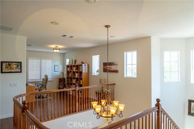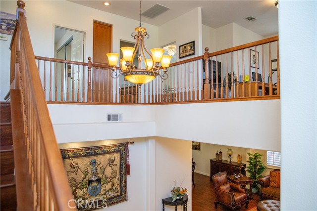 Exclusive turnkey home located in the prestigious and highly desired Mountaingate Community, one of Corona's most sought-after neighborhoods. This home offers tranquility away from city noise, yet convenient access to the 91 and 15 Freeways, entertainment, shopping, recreational centers, parks, and schools. Situated on a generous lot of over 10,000 sq. ft. with stunning views of the serene Cleveland National Forest, this two-story floor plan boasts over 3,000 sq. ft. of living space. Enter through the warmly appointed entryway featuring a Mocha Maple staircase, leading to an elegant living room, gourmet kitchen, and cozy family room with a fireplace. Matching Maple Mocha cabinets throughout the home provide ample storage space. A fourth bedroom with a full bathroom is conveniently located downstairs by the main entrance. The upstairs master bedroom is set apart from the rest of the house, creating a retreat-like ambiance. The master bathroom features his and hers vanities, granite countertops, a coffee bar, an enlarged shower, a Jacuzzi bathtub, and a spacious walk-in closet. The upstairs layout flows elegantly with two additional bedrooms, a full bathroom, and a loft that can be converted into the perfect space for your needs. Make this house "YOUR HOME."