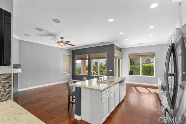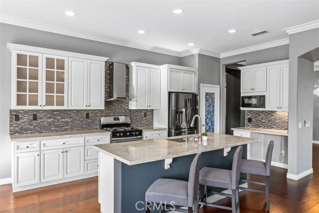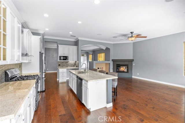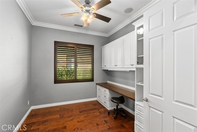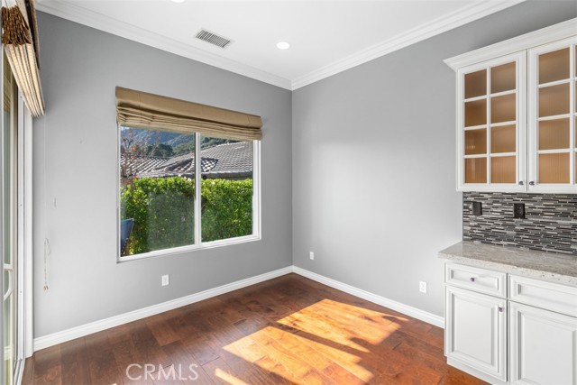 Welcome to Trilogy @ Glen Ivy! The #1 55+ Active Adult Community in the Inland Empire! Located at the base of the Cleveland National Forest. Surrounded by the Glen Ivy Golf Course. Gorgeous VIEW Home! If you're looking for a gracious home that can accommodate a variety of entertaining styles, the Satsuma is for you. From small to large gatherings, indoor/outdoor casual get-togethers or large parties throughout the house, this home can do it all. The master suite is located down the hallway secluded from the living areas of the home. The guest suite is located at the front of the home, making it ideal for hosting weekend guests in comfort. There is an additional room perfect for an office with a custom built in desk, cabinets & French doors.. Built in customized buffet in formal dining room with gorgeous crystal chandelier. Adjacent living room perfect for relaxing after dinner. Newly remodeled kitchen features granite counters, beautiful custom cabinets with soft close drawers, abundant cabinetry and storage. Large center island with newer sink and large breakfast bar which opens to a spacious great room complete with fireplace and entertainment area to accommodate a 65 inch TV. WOOD FLOORING THROUGHOUT. Sunny breakfast nook is steps away from your covered patio with an amazing surrounding peaceful view. Custom window coverings throughout. The 2 car attached garage has epoxy flooring and custom built in cabinets with work desk. Water softener, freshly painted inside & out, crown molding, surround sound. Gated front entry & retractable screen. Many amenities some of which are a large ballroom & dance floor, 2 pools, one indoor, sport center, tennis & pickle ball courts. Exercise classes and dance classes. Pottery, painting, glass fusion, quilting, cards, games. Many clubs including a travel club! Outdoor amphitheater for summer concerts & much more. Life begins at 55!