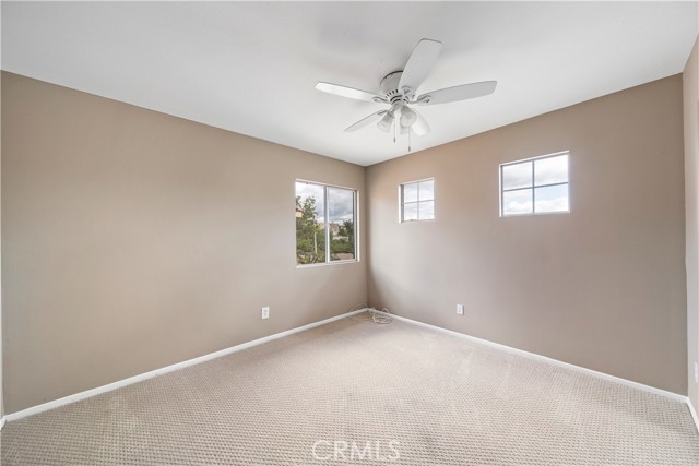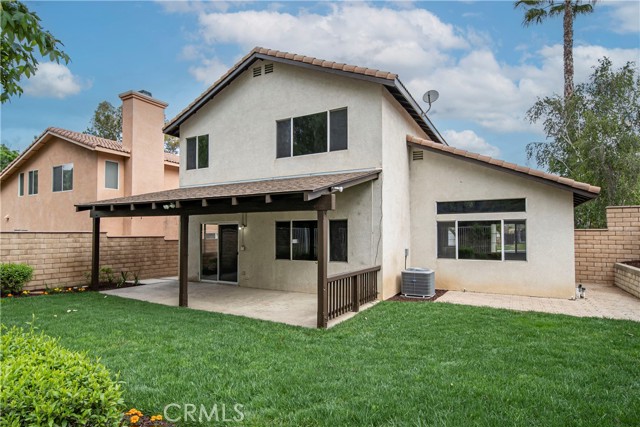 Great, move-in ready, 2-story home with nice curb appeal in a cul-de-sac neighborhood. Features and upgrades include central AC, high ceilings, LED lighting, fresh interior & exterior paint, new laminate flooring, double pane windows and new carpet throughout. The open floorplan welcomes you into the living room which leads you to the spacious family room with a fireplace and dining area. In the kitchen you will find a center island, walk-in pantry, stainless steel stove, microwave, and dishwasher. The downstairs is complete with a bedroom that is currently being used as a den and can be converted back to a bedroom, an individual laundry room and powder room. Upstairs there is a spacious master bedroom with high ceilings and a private master bathroom that offers double sinks, and a separate tub & shower. 2 additional bedrooms and a full hall bathroom. Relax in the backyard with a covered patio and a side yard. 2-car attached garage with direct access to the home. Hurry! This could be your dream home!
