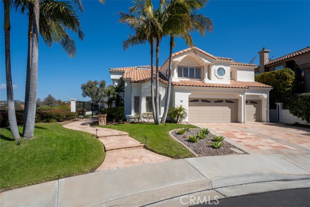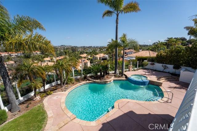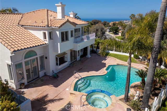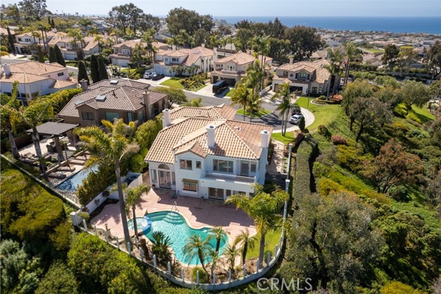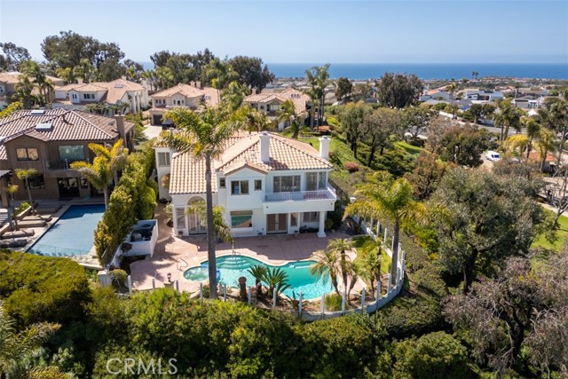 This is coastal living at its best! 10 Porto Cervo Dr., Dana Point, is an exceptional coastal luxury residence in the one of the most desired guard-gated Monarch Beach communities. The home is located at the end of a serene cul-de-sac and has highly coveted expansive ocean and mountain views from both levels, a pool, spa, and spacious backyard sanctuary with an unobstructed view of Saddleback Mountain (Santiago Peak). Salt Creek Beach, the Waldorf Astoria and Ritz Carlton are just minutes away by car or an invigorating walk. Dana Point Harbor and Laguna Beach are a short drive away. The home seamlessly blends elegance, functionality, and comfort. The first level includes one bedroom/office, an entertainer’s bar, a custom fireplace, and an abundance of natural light illuminating open living and dining rooms. The main floor also features a well-appointed kitchen with granite countertops, overlooking a light and airy family room with a second fireplace. French doors and large windows showcase the stunning backyard vistas, pool, and spa. The second floor hosts a spacious primary bedroom that is a haven of natural light with ocean and mountain views, a fireplace, a generous bathroom, and walk-in closet supported by a deeper second cedar lined closet. Two additional bedrooms on the second level have ensuite full bathrooms. Welcome to the prospect of life by the beach!