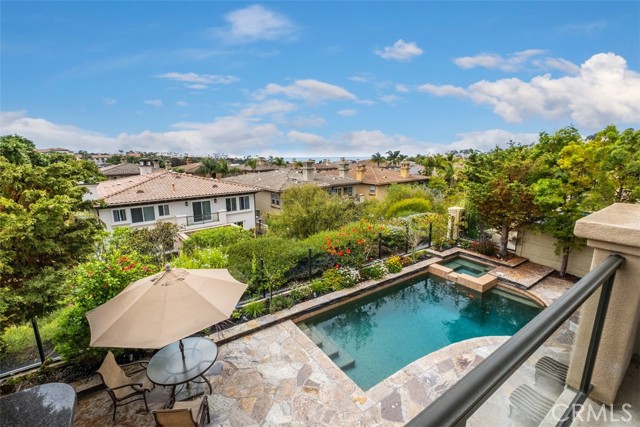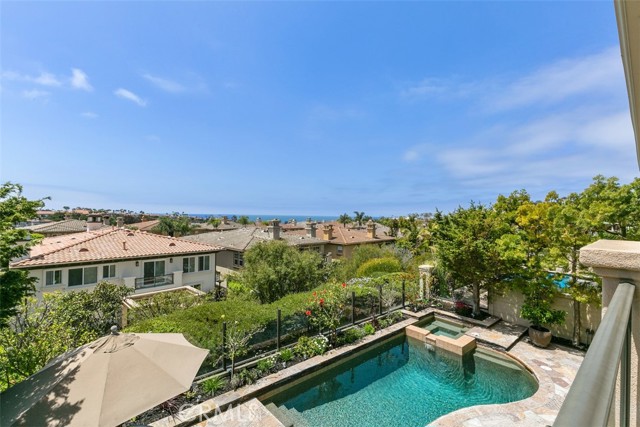 An outstanding opportunity located in the prestigious "Ocean Close", "Guard-Gated Community" of Ritz Pointe! This approximate 4000sqft residence boasts "Italian style" architecture and contains 4-bedrooms, a bonus room with a generous closet (possible 5th bedroom), 3.5 baths, 3 fireplaces, refinished kitchen cabinetry, new interior carpeting, hardwood floors, separate living and dining rooms, and wine room! In addition to the saltwater "Pebble-tec" pool and spa, and an outside barbecue area, additional amenities include multiple air conditioning condensers, security system, tankless water heater, LED lighting, upstairs laundry facilities, honed travertine marble and antique walnut flooring, center-island kitchen with granite countertops and "Viking" stainless steel appliances inclusive of refrigerator/freezer, double ovens, dishwasher, and 6-burner range. A huge added bonus is a $25,000.00 Sunrun Solar System which is totally paid for! The "ocean view" Master suite contains its own fireplace and 2 very gracious "walk-in closets w/custom organizers". The Master bath includes a "jacuzzi" type tub, walk-in multiple head shower and double vanities!! Additional features include antiqued ivory/onyx hardware, custom lighting, and a custom wood entry door imported from France. The oversized 2-car/1-car garages have epoxy flooring and custom cabinetry as well as 3 additional parking spaces on the driveways. This semi-custom residence is located on a single loaded cul-de-sac, across from a "park" and minutes way to a private walking path within the gated community that extends along the perimeter of the Monarch Beach Golf Course and directly to the Pacific Ocean!! Walking distance to both the Waldorf Astoria and Ritz Carlton Resorts as well as the "world renowned" Salt Creek Beach with its famed "surfing breaks"! Minutes to the Dana Point Harbor with its "Lantern District" and its numerous shopping and dining facilities. This incredible residence seems to have it all... size, location, 4/5 bedrooms, 3 fireplaces, cul-de-sac location, a paid for solar system, pool & spa and walking distance to the beaches of the Pacific Ocean!