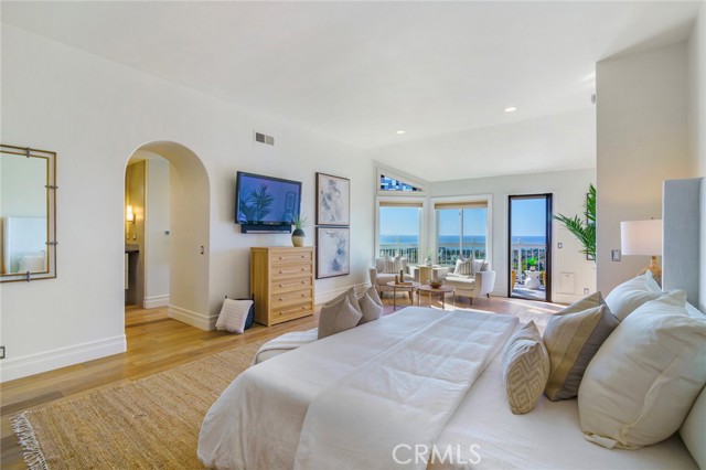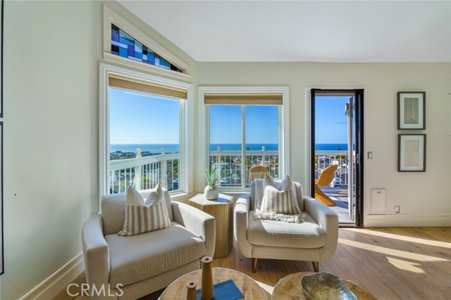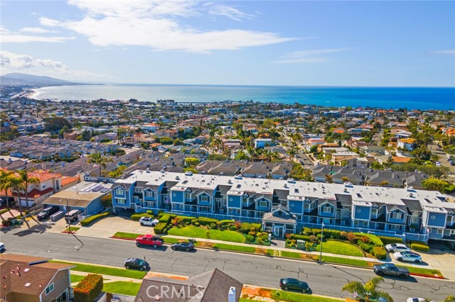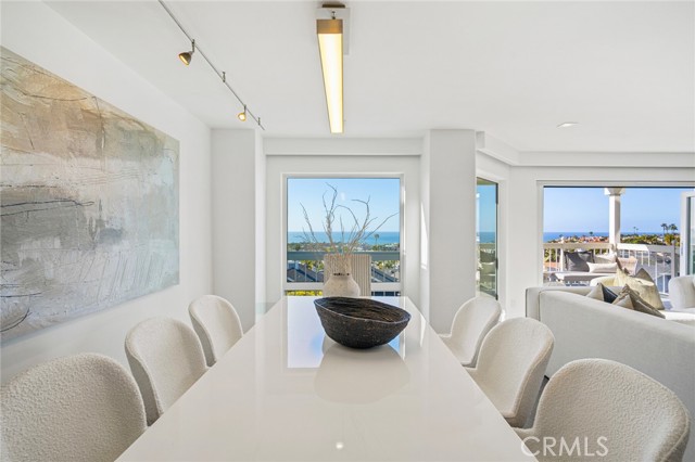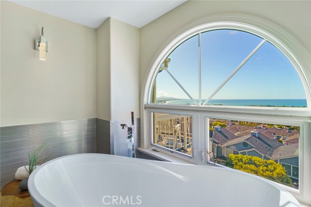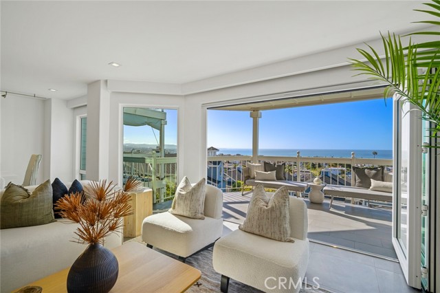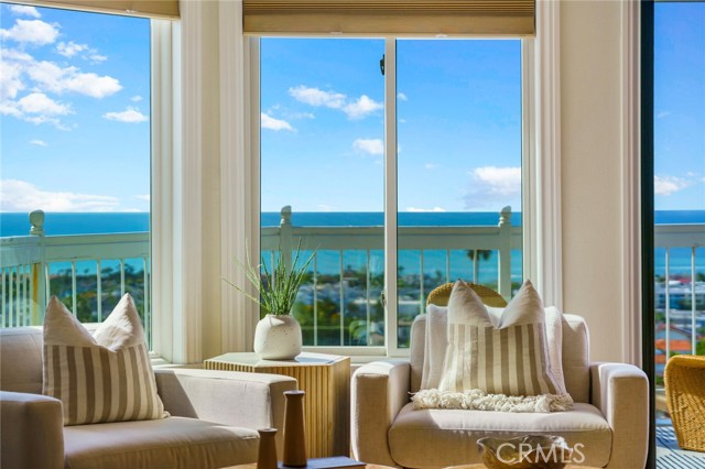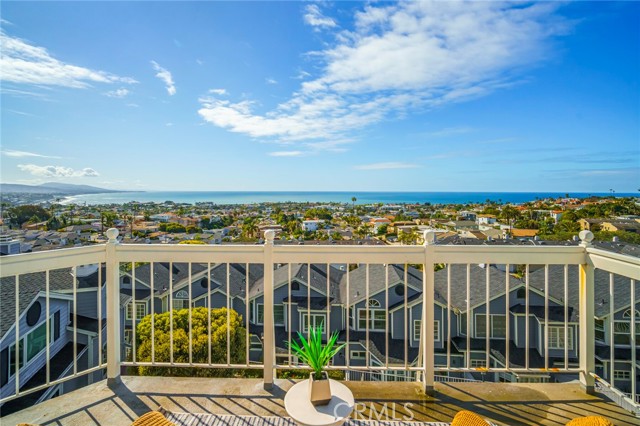 Experience the epitome of coastal luxury in this stunning Dana Point townhome, where panoramic ocean and whitewater ocean views take center stage from both interior and exterior living spaces. Recently upgraded and remodeled, this home features today’s most sought-after finishes and design elements. Two ocean-view balconies extend the living space outdoors, complementing the three-bedroom, three-bath layout spread over approximately 2,300 square feet. Flooded with natural light, the residence boasts an open-concept great room with a fold-away glass door opening to a balcony, enhancing the indoor-outdoor flow. This space is perfect for entertaining, complete with a stacked-marble accent wall, a linear fireplace, and remote-controlled window blinds. The kitchen is a chef’s dream, outfitted with beautiful countertops, a large butcher-block island, a sit-down bar, custom-designed soft-close maple cabinetry, and top-tier appliances including a Bosch dishwasher, Thermador refrigerator, and Miele steam oven, espresso station, and induction cooktop. The primary suite is a private retreat, crowned with soaring ceilings and featuring a large walk-in closet, an expansive ocean-view balcony with a designer surround linear fireplace, and a spa-like bath with dual vanities, a soaking tub overlooking the ocean, quartz countertops, and a large shower with stylish tile and a frameless glass enclosure. This exclusive gated community of just 20 townhomes showcases classic Cape Cod architecture and designed by the renowned Mark Singer, a resort-style pool and spa, an elevator to all levels, and secured subterranean parking. Located near Dana Point’s vibrant Lantern District, harbor, shops, restaurants, schools, and abundant hiking and biking trails, this home invites you to live the luxurious coastal lifestyle all year round.