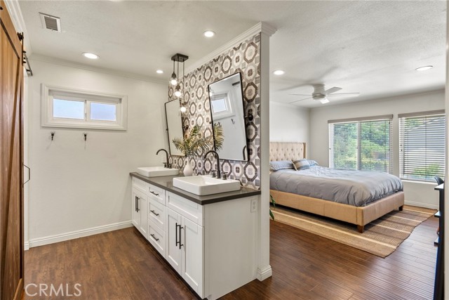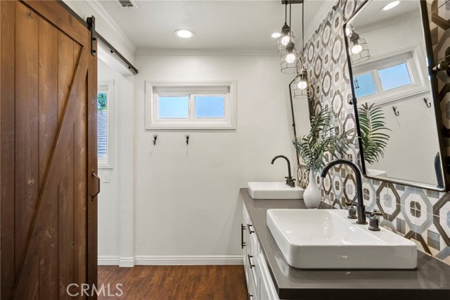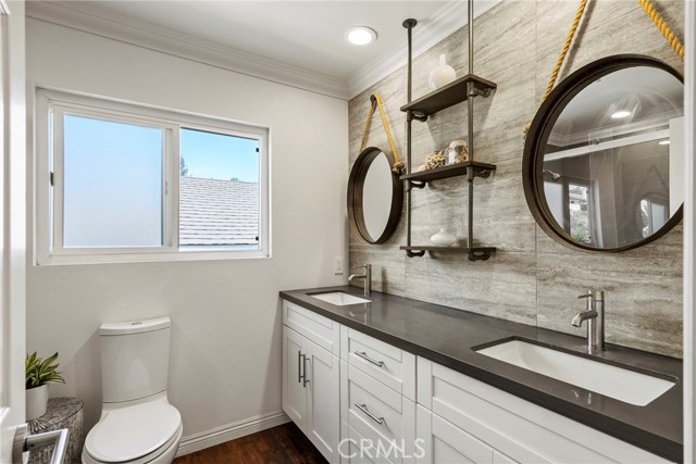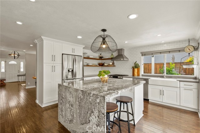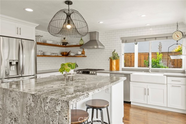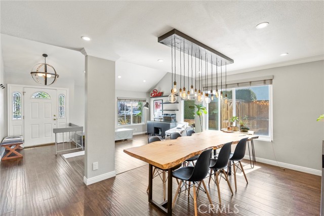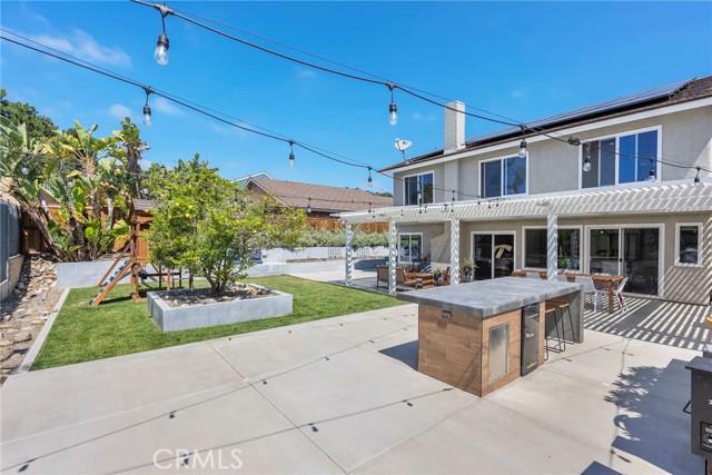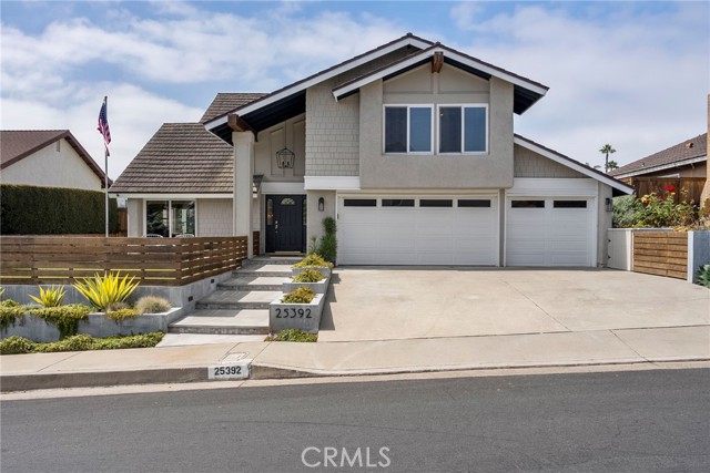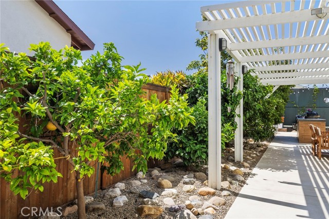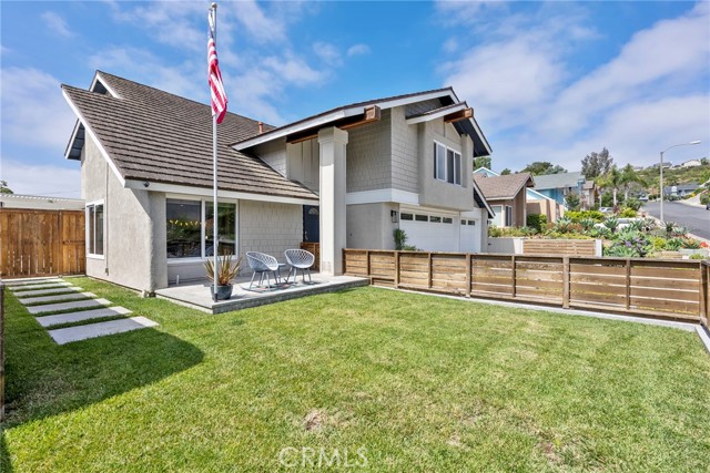 Minutes from the beach is this turn key fully remodeled gorgeous home. Owned by an interior designer, every detail has been carefully crafted to create the modern yet comfortable energy flowing through the interior and exterior of the property. The fully fenced front and backyards have been professionally landscaped. Step inside and take in the cathedral ceilings and bright open design, laminate hardwood floors throughout and views into the stunning private back oasis featuring mature fruit and avocado trees. Ascend upstairs to find four bedrooms, a loft or office and two full bathrooms. The primary bedroom features dual walk-in closets. The remodeled kitchen offers quartz countertops and a granite island with waterfall edge and sleek stainless-steel appliances. Upgrades include all dual paned vinyl windows, PEX plumbing pipe, a new electric panel, new solar panels (overbuilt by 100% for future electric needs), a whole house fan, all new air ducting, a water softener, 220 volt for an electric vehicle and an outdoor shower. The backyard boasts an outdoor kitchen fully equipped with a grill, smoker, running water, refrigerator, outdoor seating and a bar creating a peaceful outdoor ambiance. Dana Point offers endless outdoor activities such as surfing, golfing, hiking, and biking complemented by breathtaking beaches like Salt Creek and Strands Beach, the picturesque Dana Point Harbor, and close proximity to the historic Mission at San Juan Capistrano.