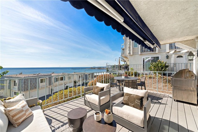 Don’t miss this opportunity to purchase one of the most upgraded homes in Capistrano Beach. Located in the quiet private community of Dana Bluffs, this condo has it all. Tastefully upgraded and professionally designed, this 3 bedroom 2.5 bath property sits on arguably the best lot in the neighborhood, which was once the model home when the community was first built. Upon entering the home, you will notice the new wood floors that have been placed throughout the property. Sit around the living space with family and appreciate the custom limestone fireplace mantel. Step into the beautifully remodeled kitchen where you'll be greeted with top-tier appliances such as the Subzero refrigerator, a Wolfe 6- Burner Stove & Hood with a Wolfe exhaust hood and Asko Dishwasher. Open your new Anderson stained wood sliding doors to step onto your patio to enjoy your 180 degree panoramic ocean views, which can be seen throughout all levels of the interior as well. Bring your friends over to watch the sailboats, whales, 4th of July fireworks and jaw dropping views of Dana Point Harbor. The interior of this home is something to experience. Exquisitely remodeled from top to bottom with the highest quality materials, once you come thru the doors, you’ll never want to leave! Restoration Hardware furnishings were professionally placed in each room of the property to properly compliment each space and are INCLUDED IN THE SALE! Just bring your toothbrush and move into your new home with ease. This is a rare opportunity to purchase a home that will continue to go up in value with tons of demand. A GREAT HOME TO LIVE. A PERFECT SPOT TO MAKE FAMILY MEMORIES. THE BEST PLACE TO ENJOY SOME OF THE BEST VIEWS IN COASTAL SOUTH ORANGE COUNTY.
