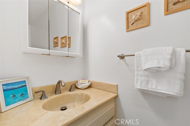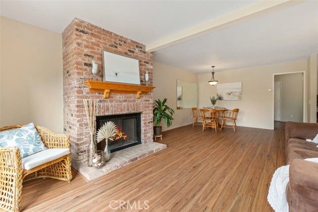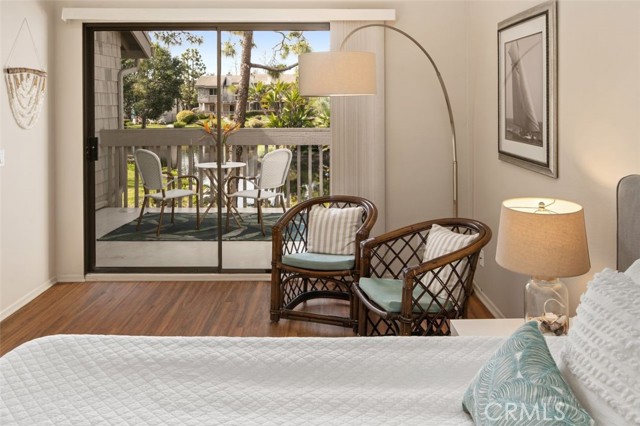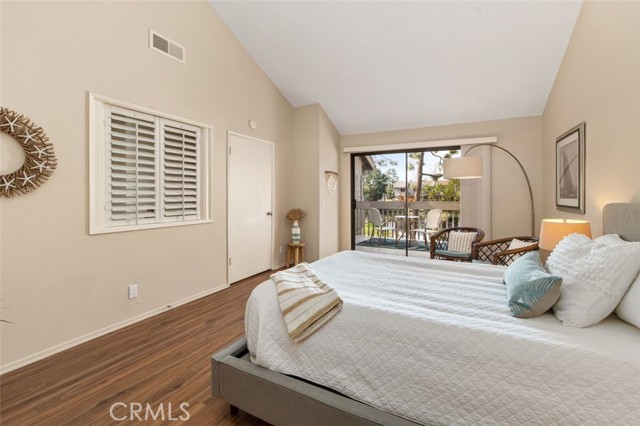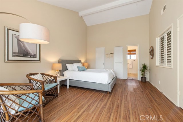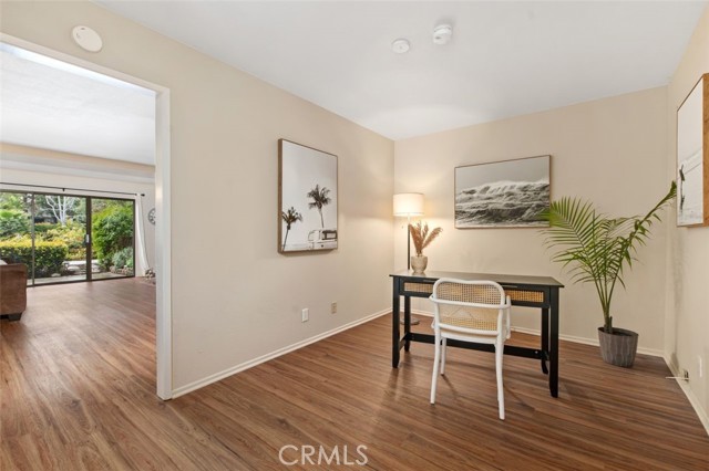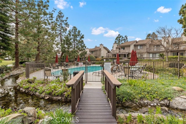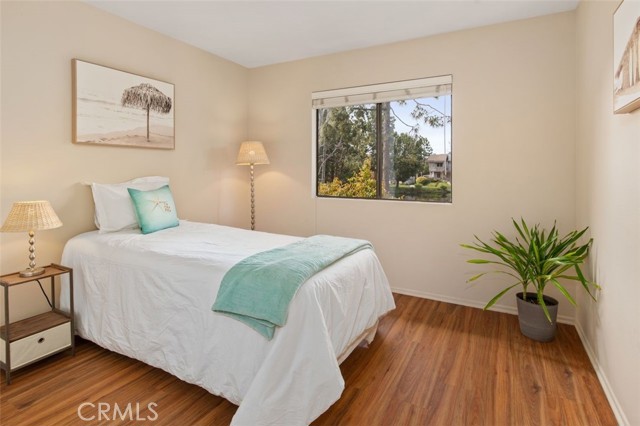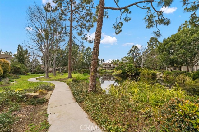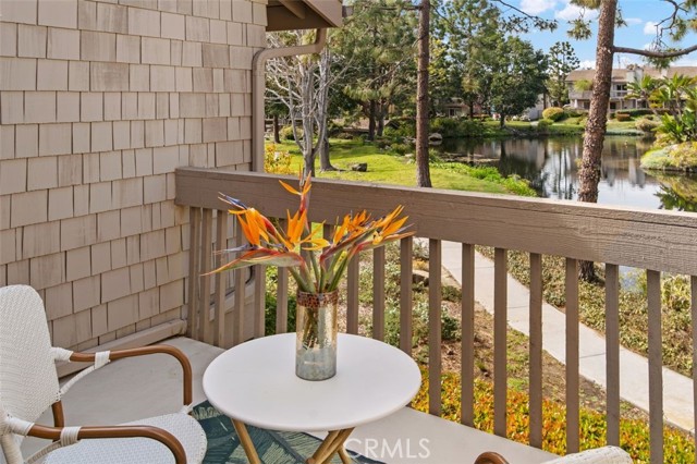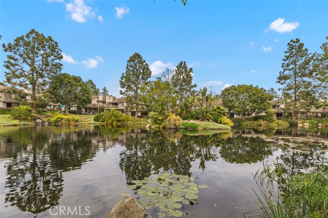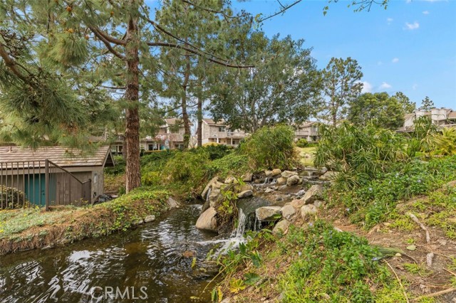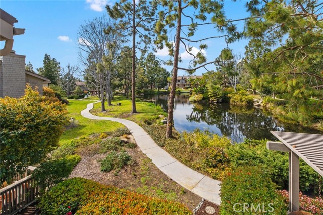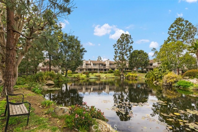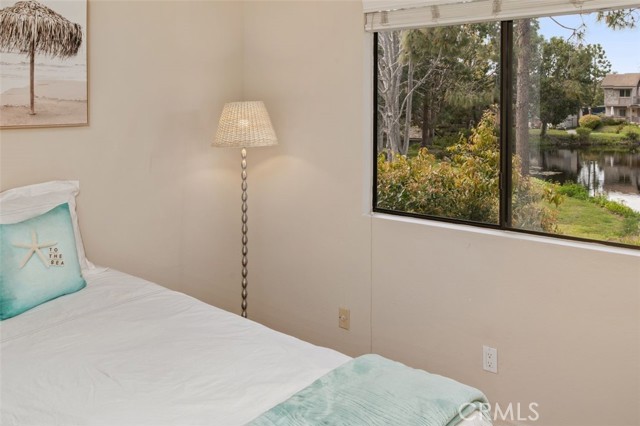Opportunity on the Upper Pond ~ Prime location, cozy, private home, a comfortable retreat in this exclusive small gated community, with front row views of peaceful Mill Pond from living room, kitchen, breakfast nook and bedrooms. A quiet escape: hear the crickets, birds, babbling creek & pond, ducks, and feel the gentle breezes. Laminate flooring on both levels, with tile in the entry foyer and lower bathroom. Dining room, living room, kitchen & nook on lower level plus an office or art studio area space with a half-bath making the optionality for a work-life balance easy. Main bedroom is larger with a walk-in closet and looks towards a large deck with sliding glass doors, providing light and great views. The master bathroom has a large tub shower and two double sinks. Second bedroom has views of the outdoor park-like setting and next to the second full bathroom. From your living room, view the secluded back patio that opens to a strolling path around the greenbelt surrounding old Mill Pond. Additional storage area under the stairwell, with garage shelving, plus a laundry area with hook-ups in the garage. Central air, lush landscaping, and a gated community that boasts a pool, picnic area and lush grounds. Close to beaches, Pines Park, all that the fashionable Capo Beach lifestyle offers: Outdoor living, beaches, a vibrant community life, shopping, restaurants with easy access to highways, open space, adventures and activities. See Top-Ten list in Supplements. Gated community, lots to envy in this unique area nestled amongst multi-million-dollar custom homes. Don’t miss this opportunity on the Upper Pond.