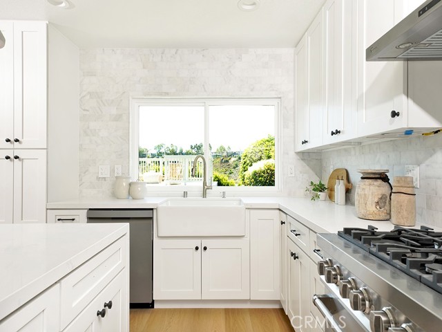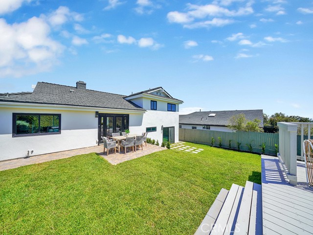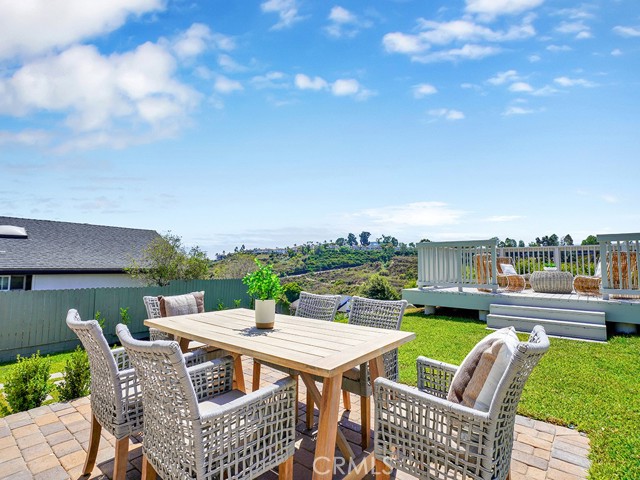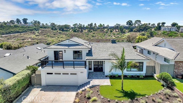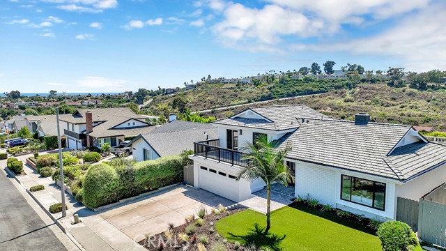 Experience coastal living at its finest in this breathtaking, ocean view Dana Point residence, mere minutes away from pristine beaches and charming Lantern District. Completely remodeled from top to bottom with custom, curated details, this home offers 4 bedrooms and 2 full bathrooms. Enjoy the abundant ocean breezes from one of Dana Point's favorite neighborhoods. Enter through a charming double-dutch door to be greeted by a stunning quartz fireplace and expansive living room. The open kitchen boasts quartz countertops, a center island, custom cabinetry, and new gas range and stainless steel appliances. The spacious primary suite on the ground level features a gorgeous marble rain shower and dual-sink vanity. Upstairs, discover three more bedrooms, an upgraded bathroom, and a balcony with ocean views. The large, rolling grass backyard is perfect for gatherings, complete with a "crows nest" view deck. New windows, furnace, water heater and luxury plank vinyl flooring throughout. Two-car direct access garage. No HOA! Thunderbird park with playground and pickleball court, just a short stroll away. This elegant gem promises to be the perfect Dana Point beach home.