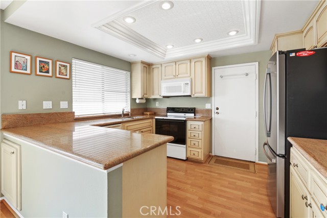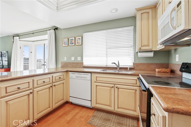 Don’t Miss this 2 Bedroom 2 Bath Single Story Home in Sea Ridge. Located just 5 minutes from Dana Point Harbor, you can enjoy Spectacular Ocean Views from the Swimming Pool, Spa and Clubhouse. This Turnkey condo has been Remodeled and benefits from an Abundance of Natural Light and an Ocean Breeze. This Sought After Model has an Open Floorplan with the Kitchen and it’s Peninsula overlooking the Dining Area and Family Room. The Kitchen boasts Raised Panel Cabinets, Granite Counters, and a Coffered Ceiling with Recessed Lighting. Laminate plank flooring runs throughout the kitchen and dining room. The Family Room has a Vaulted Ceiling, Ceiling Fans, and Fireplace with gas. The sliding glass doors off the family room lead to fully fenced Wrap Around Patio with Peak-a-Boo Ocean Views. The Large Primary Suite features a Vaulted Ceiling, Ceiling Fan, Built-in Closet Organizers, and Sliding Glass Doors to the Patio. The En-Suite Bathroom has Dual Sinks and a Soaking Tub along with a Shower with New Frameless Glass Enclosure. The Second bedroom features a drop-down Murphy Bed in the Built in Cabinetry as well as a Desk, Ceiling Fan, Built-in Closet Organizers, and a View of the Courtyard. The guest bath was remodeled with a Frameless Glass Shower Enclosure. The heater has been recently replaced with an option to add AC later if desired. The unit was recently re-piped with PEX by the HOA and the exterior of unit is slated to be painted this summer. A beautifully landscaped courtyard leads up to the front door. The only shared wall is at the garage making this feel like a Single Family Home. The 2 Car Attached Garage has Direct House Access, Built-in Storage, and is oversized to accommodate 2 vehicles plus washer/dryer hook ups with both electric and gas nearby, and a New Hot Water Heater. This is a Rare Opportunity to own a Single Level Home in the Beautiful Sea Ridge Community. Sea Ridge amenities include a community pool, spa, ample parking, newly resurfaced tennis courts and exterior maintenance. This prime location is a short distance from the heart of Dana Point, just minutes away from beaches, Dana Point Harbor, golf, restaurants and shopping. Complex is VA and FHA approved!