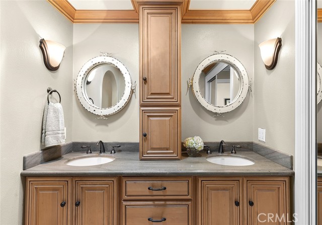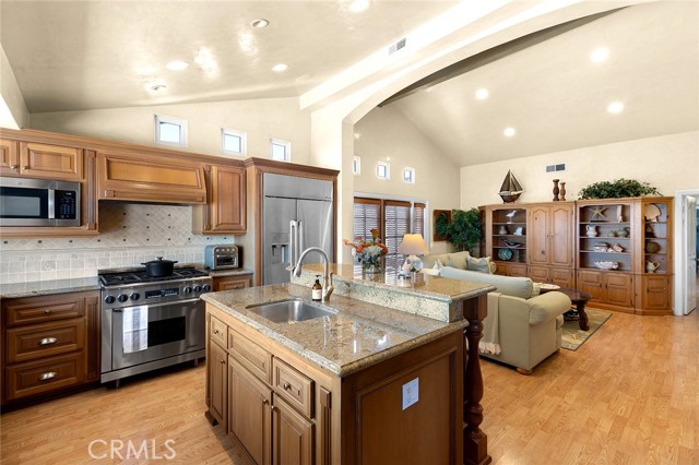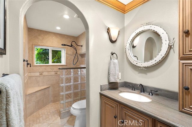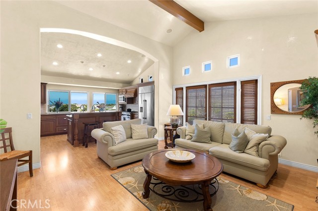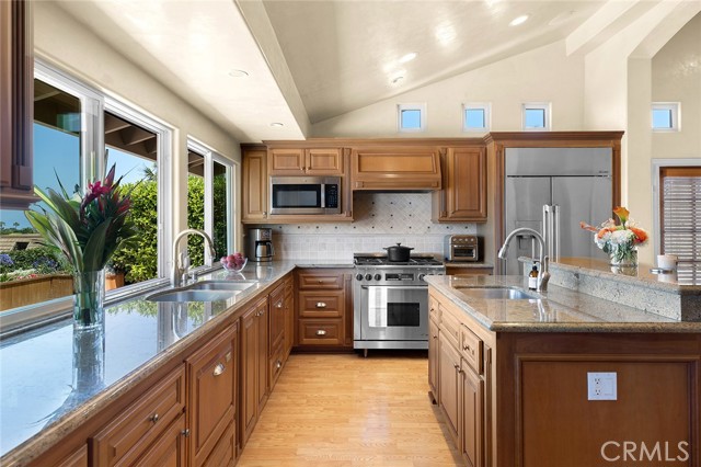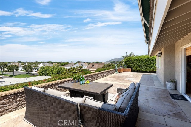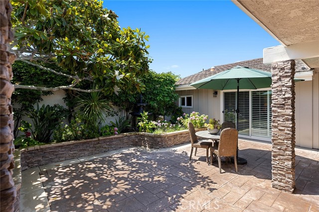 Premier single-story villa in Niguel Shores, a prestigious 24-hour guard-gated oceanfront community. Experience resort-style living at its finest in this spacious, updated 4 bedroom, 2.5 bath view home boasting an open floor plan and an abundance of windows and doors throughout. This private oasis offers the perfect balance of entertainment and relaxation. Take your backyard retreat, complete with stacked stone hardscape, custom built-in barbeque, mature landscaping and gorgeous views of Catalina Island, Laguna mountains and majestic sunsets. Indulge your inner chef in the gourmet kitchen, which boasts Catalina Island and sunset views, a commercial-style 6 burner stove and range with custom hood, built-in Dacor refrigerator, additional beverage refrigerator, two Fisher & Paykel dishwashers, two sinks, custom cabinetry, custom pantry, and oversized island adjoining the great room with vaulted ceilings and elegant French doors. Create unforgettable memories hosting special gatherings in the spacious living and dining areas, featuring floor to ceiling windows, Cathedral ceilings, and refreshing coastal breezes. Your primary suite awaits with high ceilings, sliding glass doors, plantation shutters and an in-suite luxury bathroom offering a walk-in shower, custom cabinetry, dual sinks, second closet, and cedar-lined attic with pull down stairs and fan. Three more delightful bedrooms offer picturesque courtyard/garden views, while the second bathroom impresses with its skylight, recessed lighting, custom cabinetry, and stunning stone countertops. The upgraded guest/powder room features a chic pedestal sink and custom lighting. Enjoy convenience and charm in the inside laundry room, featuring a beautiful Dutch door and lovely courtyard/garden views. The detached two-car garage is thoughtfully equipped with epoxy flooring, built-in storage, and a French door leading to the tranquil courtyard. Discover an exceptional location in the heart of Monarch Beach, where Strands Beach, the Ritz Carlton, Waldorf Astoria, Monarch Beach Golf Links, coffee shops, restaurants and parks are conveniently nearby. Embrace the coastal paradise with pristine beaches, world-class golfing, and five-star resorts - your dream lifestyle awaits in this exquisite home.