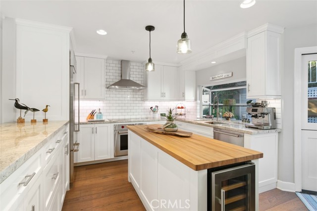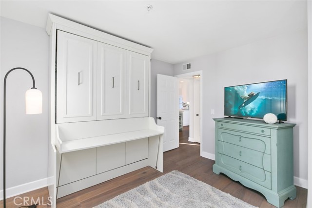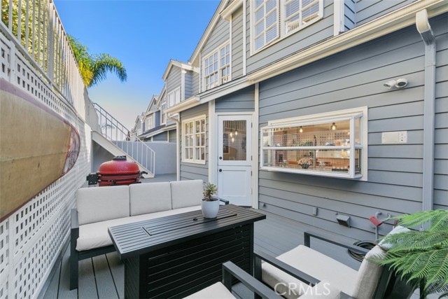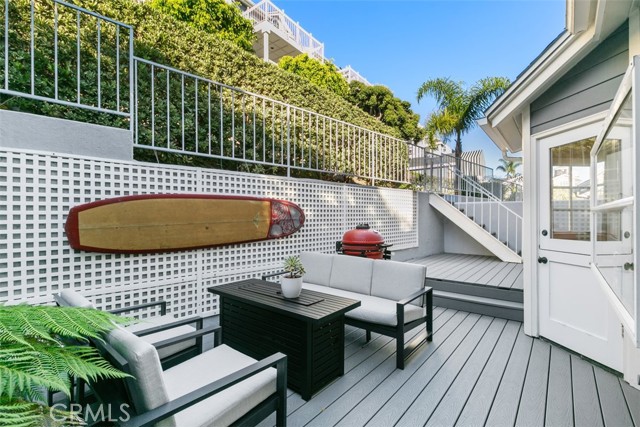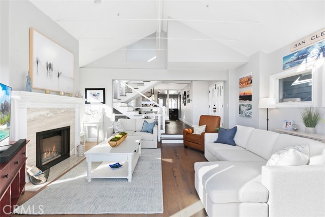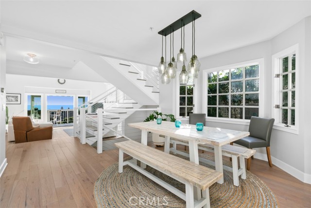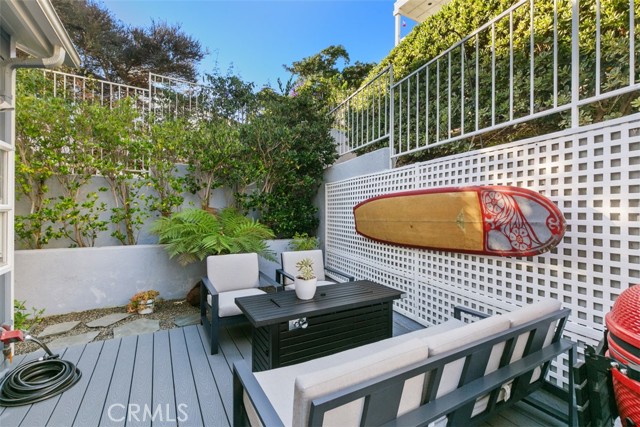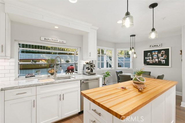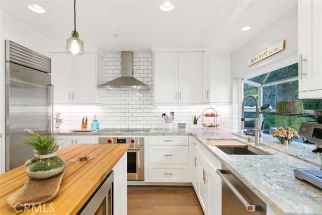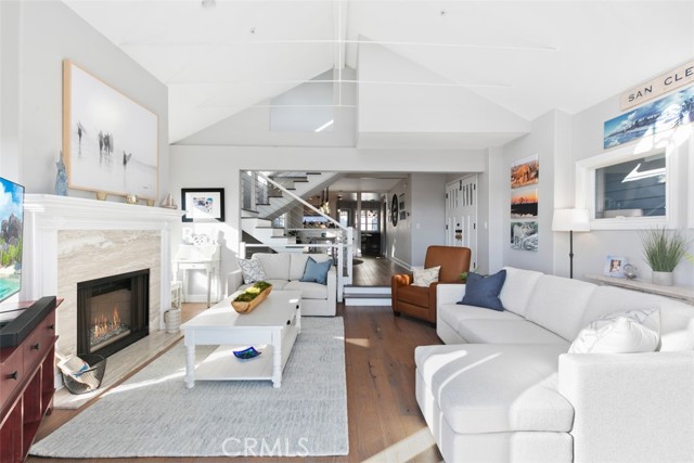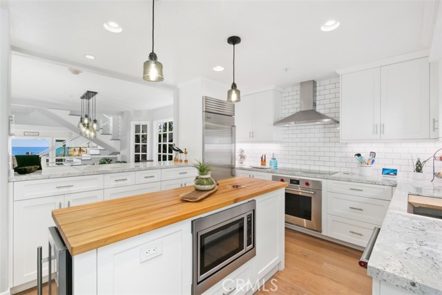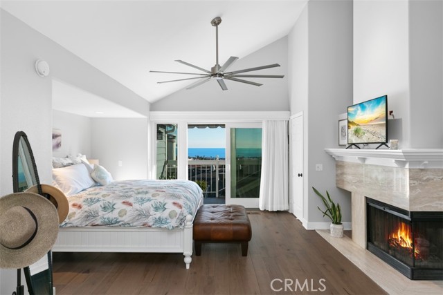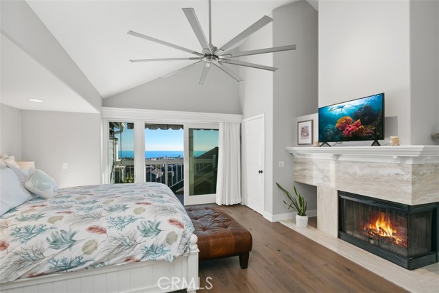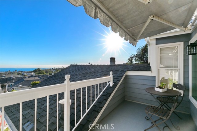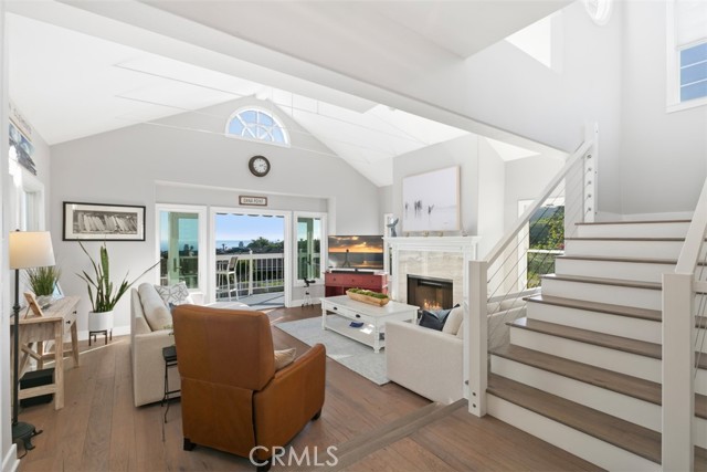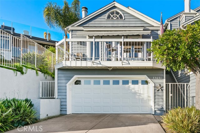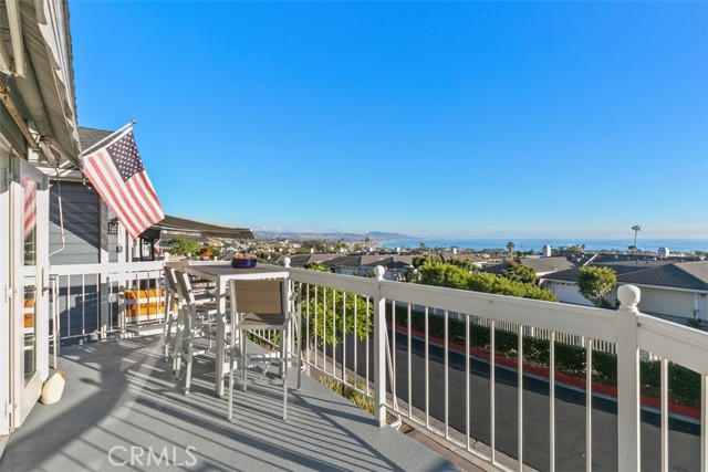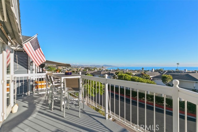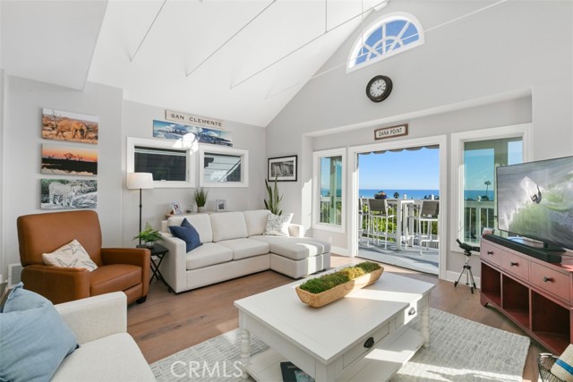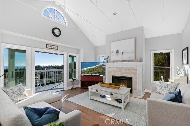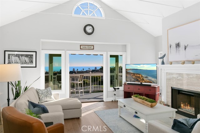 Rare opportunity awaits with this coastal townhome boasting incredible panoramic ocean views. Conveniently located near downtown Dana Point and Strands Beach, this residence is a true showcase property, featuring 2 bedrooms, 2 bathrooms, and nearly 2,000 square feet of luxurious living space. Step into the main level, where the living room greets you with expansive ocean views. High ceilings, Anderson French doors and windows, Hickory hardwood floors, and a stone-set fireplace are just a few of the living room's highlights. The living space seamlessly extends to a private deck, perfect for enjoying coastal sunsets while dining al fresco with the soothing touch of ocean breezes. The hardwood floors flow throughout, creating a cohesive open-concept space that combines the kitchen and living areas. The designer kitchen boasts frameless shaker-style cabinets and drawers with soft-close hinges, a Cambria Summerhill Quartz countertop, and a center island with a Hickory butcher block top. Top-of-the-line appliances include a Subzero refrigerator & freezer, Wolf Oven, Wolf Transitional Induction Cooktop, and a built-in wine fridge. Just off the kitchen is a private back patio in close proximity to the pool & spa. On the main level, there's a secondary bedroom also with panoramic ocean views, wall-to-wall mirrored wardrobe doors, and murphy bed. The upper level is dedicated to the primary suite, offering sweeping ocean views throughout. The suite includes a spacious retreat area perfect for an office or additional sitting. In addition, the master suite includes a very large walk in closet and a spacious en suite bathroom with a Kohler freestanding tub and an beautifully updated walk-in shower. Situated on a single-loaded street with a cul-de-sac. Privacy, exquisite design, and panoramic ocean views are the standout features of this home along with the proximity to downtown restaurants & shops, Dana point harbor, and beautiful beaches. This property is a must see.