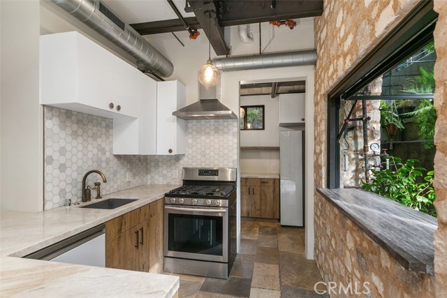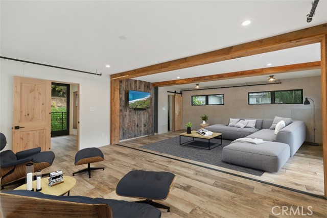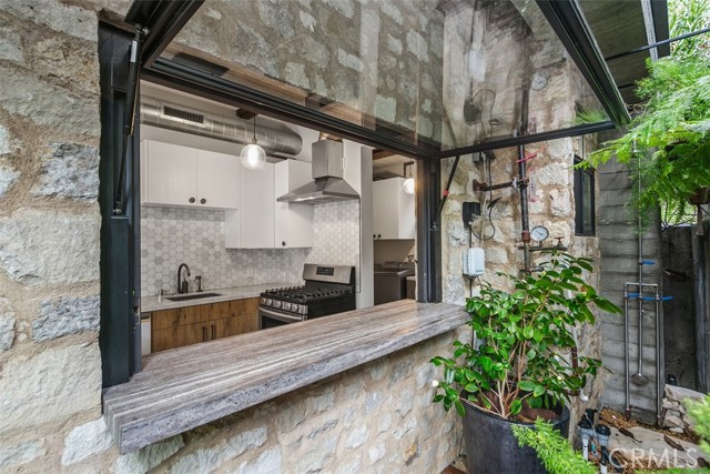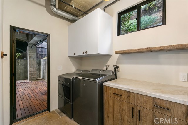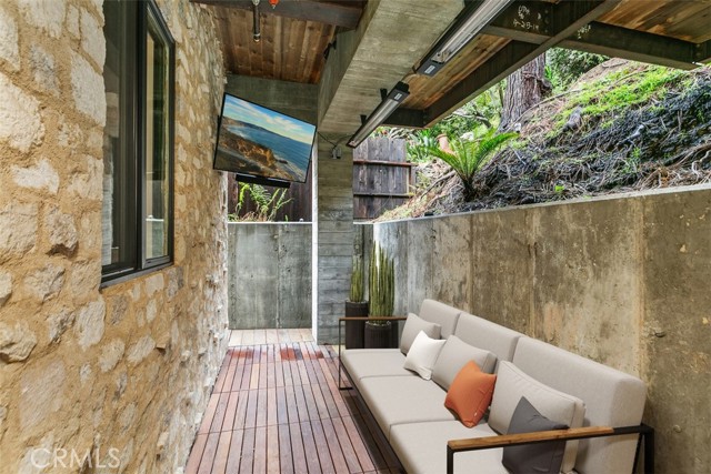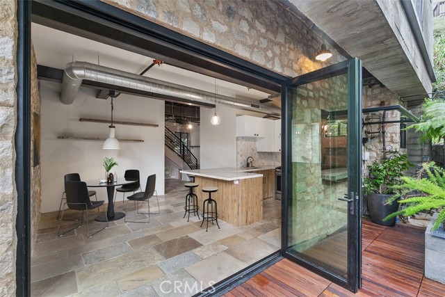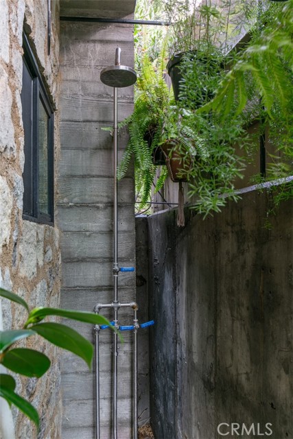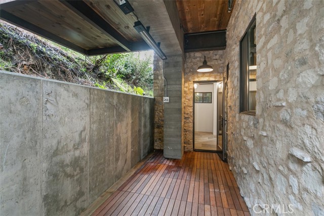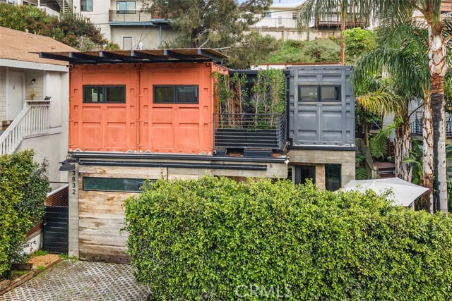 Nestled in the highly sought after Lantern District area of Dana Point, this extraordinary single-family home stands as a testament to innovative design and sustainable living. Crafted from repurposed shipping containers, the residence seamlessly blends modern aesthetics with eco-friendly materials. As you approach you are welcomed by a striking custom-built automatic sliding barn door, crafted from reclaimed wood sourced from Idaho. The stunning door features a secret man door and soundproofing which sets the tone for the unique character of the home. The spacious garage also doubles as a studio for artists, complete with a built-in Murphy bed for guests. The interior has so many stylistic features. The reclaimed French limestone floors interpret both luxury and environmental consciousness. Quartz countertops adorn the kitchen, complemented by a pass through flip out window with an exquisite countertop slab of Italian travertine. The exterior boasts a bison pedestal deck with Brazilian hardwood, offering a perfect blend of durability and style. The living space seamlessly connects with the outdoors through a La Cantina steel bifold door and an outdoor shower, adding an element of relaxation and natural beauty. The outdoor space is ultra private and perfect for entertaining. Stone walls, a custom blend of textures, and board form finish concrete beams contribute to the home's unique and robust aesthetic. Upstairs, a custom-built steel door leads to a balcony, while reclaimed wood beams add warmth and character. The back balcony, featuring a cool corrugated roof overlooks the lush surroundings. All windows are fiberglass with a sleek black finish and provides a modern and cohesive look throughout. Technological conveniences abound with a Lutron lighting system, Nest thermostat, and low-voltage lighting by Alliance, ensuring both efficiency and ambiance. The property is equipped with a 500-amp panel, offering ample power, and the heating and cooling systems are top-notch, with a 2.5-ton unit and a new A/C unit. Built on 15-foot-deep caissons, the house is earthquake-resistant, providing peace of mind. The entire structure, from the metalized handrails and fencing to the custom-built cabinets, reflects a commitment to quality and durability. This home has local celebrity with multiple articles written about it in the Dana Point Times. This home is a must see.