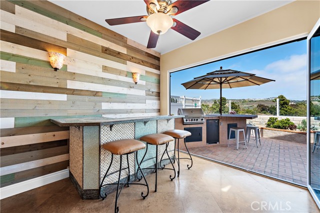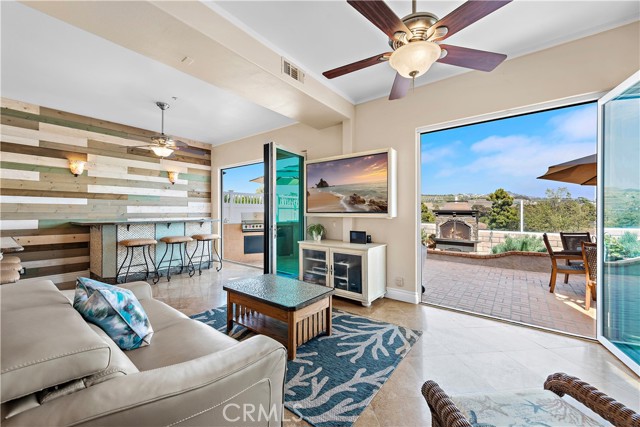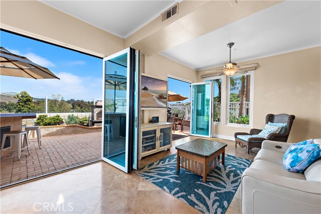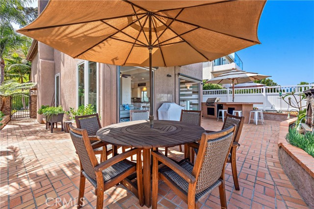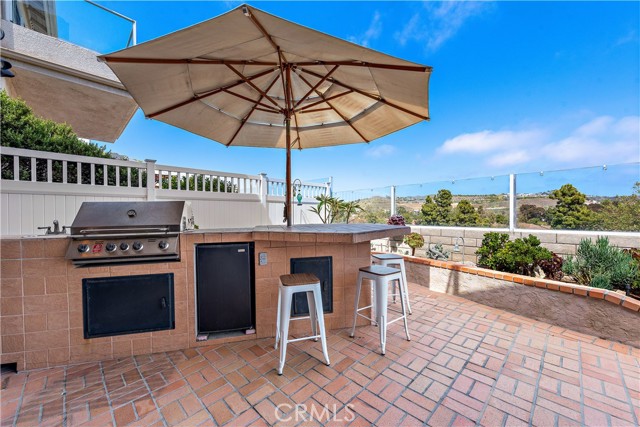Coastal breezes and stunning views await you at 33825 Bridgehampton Drive! If you've been searching for a beach close charmer, look no further! This 3 bedroom, 3 bathroom home is located in the highly desirable Hampton Hill gated neighborhood in Dana Point where you're close to Dana Point Harbor, Doheny Beach, prime restaurants, parks, trails, shopping, boating, and so much more. This cul-de-sac home on a single loaded street is perfect for entertaining inside and out. The spacious granite kitchen has a center island, generously sized pantry, built-in wine racks, counter seating, beautiful decorative glass cabinetry, a bay window, and is open to the family room which is adorned with a custom bar w/ barstool seating and a decorative wood panel wall. The family room features a built-in TV cabinet and motorized roller UV protectant solar shades and new Anderson Window panoramic doors which create the perfect indoor/outdoor space. Adjacent to the family room is a cozy living room featuring a fireplace. There is a downstairs powder bath as well as a deep walk-in coat closet. Upstairs you'll find 3 large bedrooms. The primary suite has high ceilings and a balcony, perfect for relaxing and enjoying stunning views! The primary bathroom has a free standing tub, a stone walk-in shower with 2 rain shower heads, dual sinks, a coffee bar, and a walk-in closet w/ attic space. The 2 spacious secondary bedrooms share a jack & jill bathroom w/ dual sinks and there's an upstairs laundry room w/ a sink & storage. The beautiful backyard has forever views, a built-in bar/bbq with barstool seating, a relaxing waterfall fountain, a fireplace, veggie/herb garden with french drains, and a big seating area to dine outdoors shaded by the custom awnings. The garage is an over-sized 2 car with storage. PAID SOLAR, NEW ROOF, SOFT WATER SYSTEM, NEW ANDERSON WINDOWS, FULL HOUSE ATTIC FAN, ALARM SYSTEM, NEW CARPET, RECIRCULATING HOT WATER, RE-PIPED, NEWER FURNACE, CENTRAL VAC, MOTORIZED WINDOW SHADES, TURF!!! Gorgeous mountain & city views with peek-a-boo ocean views to top it off! Don't miss your chance to live the California dream on Hampton Hill.