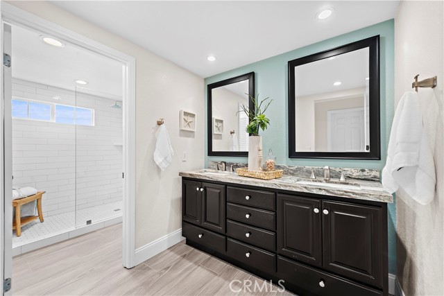 Bathroom Information | Shower, Shower in Tub, Double Sinks In Master Bath, Exhaust fan(s), Granite Counters, Quartz Counters, Remodeled, Upgraded, Walk-in shower |