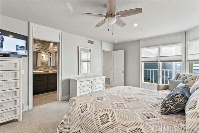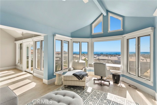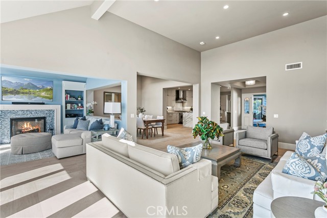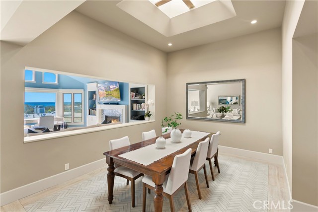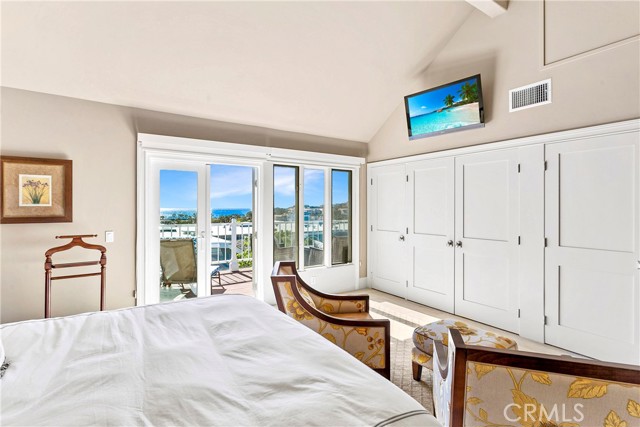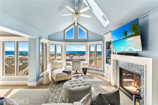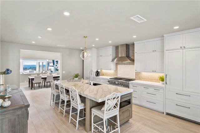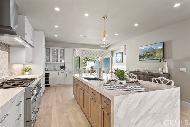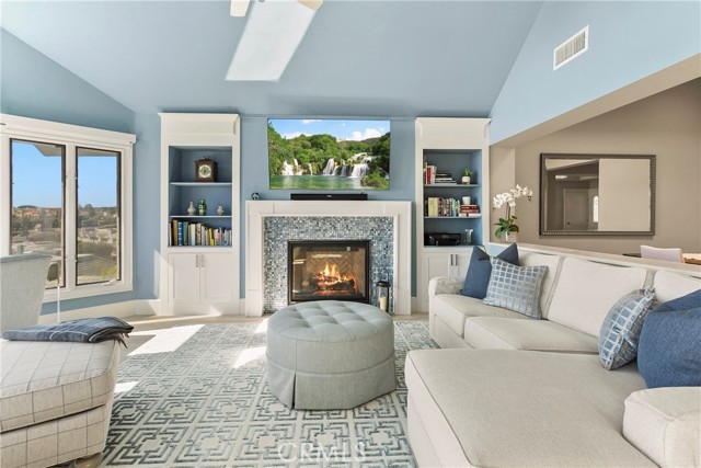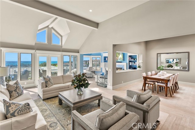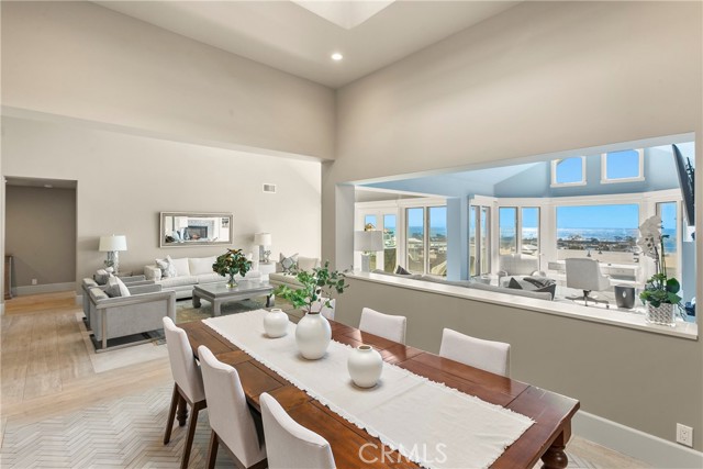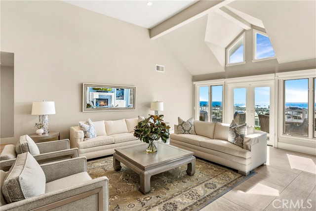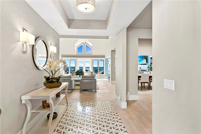 Spectacular sit-down views of the ocean and Dana Point Harbor from this single-level home which sits atop the bluff in the prestigious gated community of Lantern Bay Villas. Meticulous attention to detail and superb craftsmanship abound in this extensively remodeled upper-level home which features vaulted ceilings, an open-concept floorplan and lots of natural light. The entertainer’s kitchen has been completely redesigned with custom cabinetry, Neolith Calcatta Gold countertops, a Thermador 48in steam range, a Liebherr single-door refrigerator and an oversize island with a breakfast bar. The primary suite features custom-built his and hers closets, spectacular views, and a redesigned spa-like bath with an oversize walk-in shower. Other designer upgrades too numerous to mention include smooth texture walls with custom paint, porcelain plank flooring with soundproof underlayment, energy-efficient appliances, new interior doors, and custom window treatments. A large deck at the rear of this expansive, single-level floorplan forms the perfect backdrop to this entertainer’s delight and is the perfect place to enjoy the gentle ocean breezes, 4th of July fireworks, and spectacular sunsets. Covered parking close to the elevator allows for easy access without any steps. Resort-like amenities in this gated community include a pool and spa, clubhouse, tennis/pickleball court, a workout room, and electric car charging stations. Enjoy coastal living at its finest in this prime location above the Dana Point Harbor and situated in close proximity to the myriad of shops and restaurants in the newly renovated Lantern District, the world-renowned Ritz-Carlton and Waldorf Astoria resorts, the charm of Laguna beach Village and some of Southern California’s finest beaches.