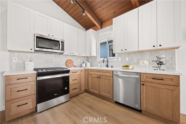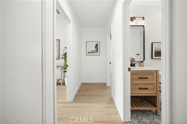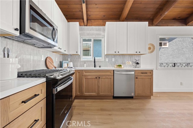 Welcome to Capistrano Beach! A gorgeously remodeled main house plus a separate unit downstairs to provide an amazing opportunity for multigenerational living or a mid/long term rental in a fantastic beach location to Live, Work, & Play. The main house is an 1,160sf recently updated 2 bed/2 bath home that’s bright & airy with new laminate flooring throughout, a decorative fireplace in the living room, exposed vaulted ceilings w/ track lighting, and large sliding doors to bring in the natural sunlight & coastal breeze. The kitchen is open concept with natural wood cabinets, calacatta countertop, stainless steel appliances, and a custom designer backsplash to bring the kitchen to life. With a stylish hallway bath and spacious bedroom, the primary suite offers glimpses of the ocean view from the balcony and a gorgeous ensuite that includes a dual vanity & walk in shower. Downstairs is a previously converted 2 bed apartment approx. 1,000sf in size and has been upgraded with recessed lighting, new furnace, a full size kitchen & bath that comes with all the modern touches & finishes. Other notable items are updated electrical, new central HVAC upstairs, paid off Tesla solar system, and an attached 2-car garage with direct access to the main house. On a 5,235sf lot, the backyard comes with an open balcony & covered patio area, nicely manicured lawn, and a jacuzzi hot tub to enjoy the sunset evenings. Just a short drive to beautiful Dana Point Harbor, various San Clemente beaches, the 5 Fwy, historic San Juan Capistrano, Camp Pendleton, & near tons of local restaurants & shops. This one is on point!