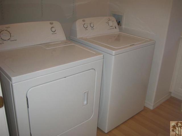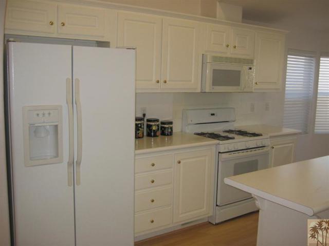 Beautiful resort style living in the Desert. This 55 plus gated community offers resort style living with two pools, 2 spas, clubhouse, billiard room, gym, fenced in dog park. This home is being rented unfurnished and includes washer, dryer and refrigerator. The property is in pristine condition, recent refurbishing, modern kitchen with island counter, roll out shelves, breakfast area. There is a private fenced in yard with mountain views, covered patio. In addition there is a two car insulated garage. Make this your own home.