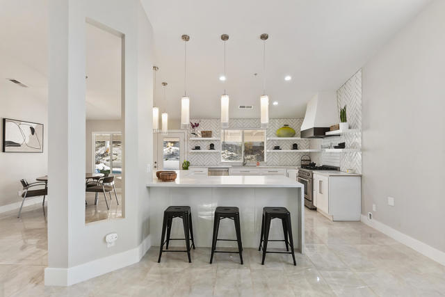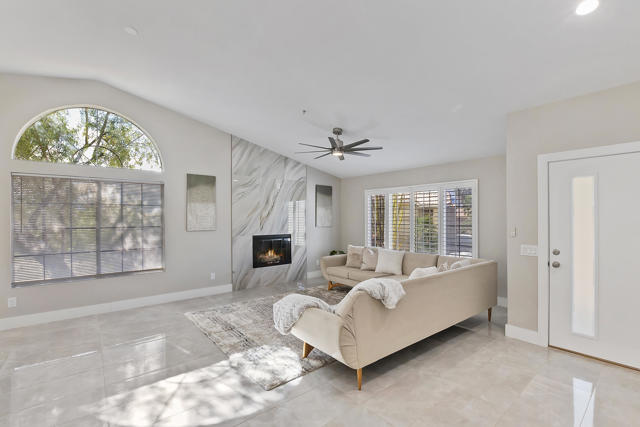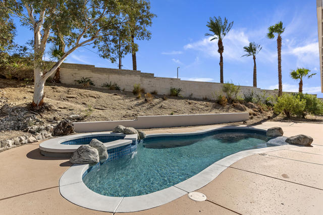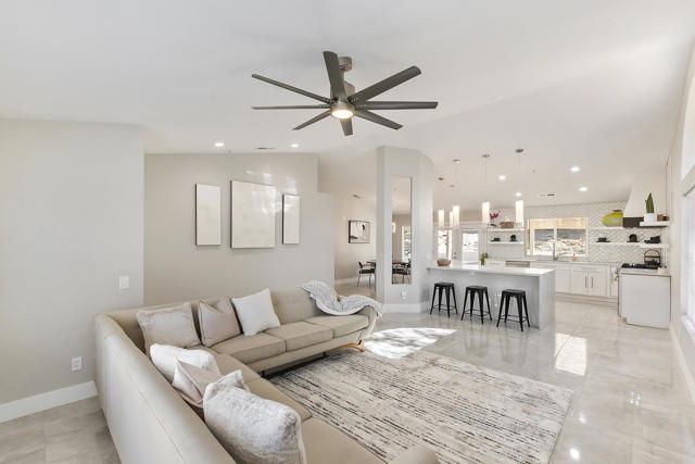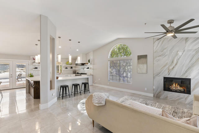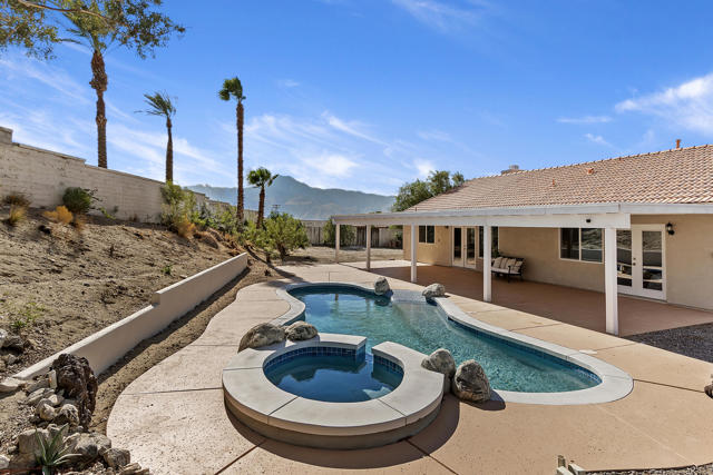 Experience luxury living in the community of Rancho Del Oro, located in the vibrant and growing city of Desert Hot Springs. This 4-bedroom rental home has been beautifully renovated and is ready for your enjoyment. Move-in ready and perfect for entertaining, this home boasts high vaulted ceilings and abundant windows, creating a bright and spacious atmosphere. Elegant light fixtures and meticulous details elevate the home's aesthetic, while the large L-shaped island provides ample storage and counter space for your culinary adventures. The 6-burner range makes cooking for gatherings a breeze. Step outside to the expansive backyard, where you can unwind around the newly renovated pebble tec pool and spa. Gather around the firepit on chilly winter nights or take advantage of the convenient outdoor bathroom and shower. Marvel at the stunning views of the San Jacinto Mountains as you relax and entertain in your private oasis. This rental home offers everything you need for comfortable and stylish living.