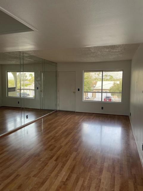 Welcome to the Beautiful Mission Lakes Country Club! This 1 Bedroom, 1 Bath Condo has been FRESHLY PAINTED , updated wood laminate flooring throughout, and white kitchen cabinets. Nice size Bedroom with walk in closet and a extra closet for storage. It is a upper, end unit with 2 extra windows to take in the spectacular view of the mountains and greenbelt. Close to pool!Don't miss out on this opportunity to lease this cute property! Palm Springs is just 10 -15 minutes away.