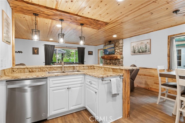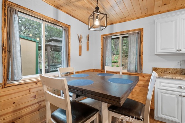 Fantastic log sided cabin backs to National Forest!! This beautiful home sits on a quiet street and is one of the most desirable locations in Fawnskin. Lots of natural wood, bright living room with large windows and knotty pine ceilings. Feel the rustic charm with wood wainscoting throughout the home. Completely remodeled kitchen with stainless steel appliances, granite countertops and ample cabinets. Newly added garage with level concrete driveway and plenty of room for parking. Amazing deck to relax and take in the mountain tranquility while the back yard gives you gorgeous forest views. This home is well loved and well maintained. A real mountain cabin to enjoy for all four seasons, if you are looking for a cabin in the woods...this is it!!!