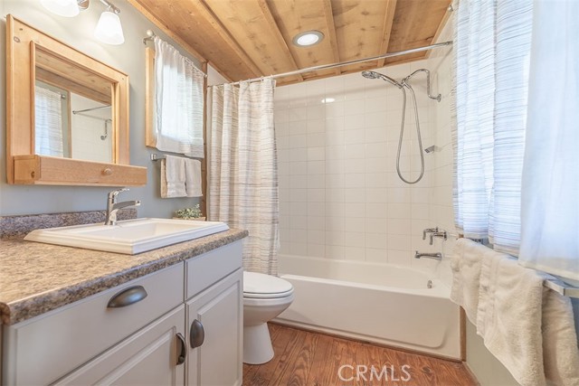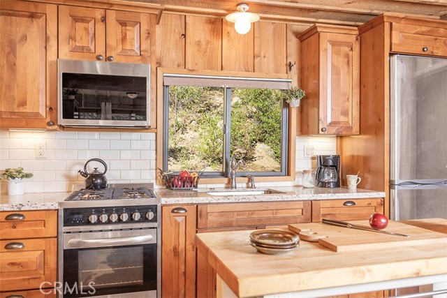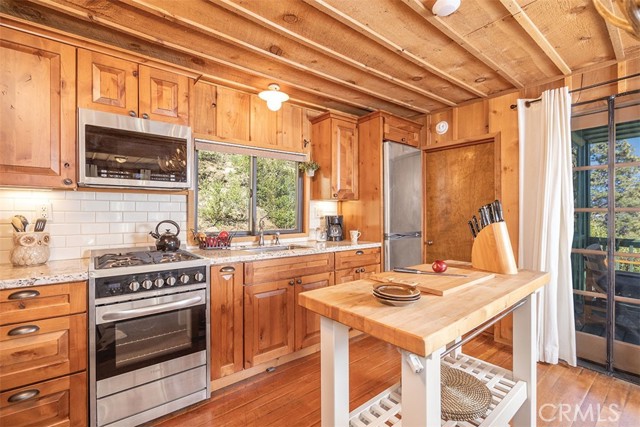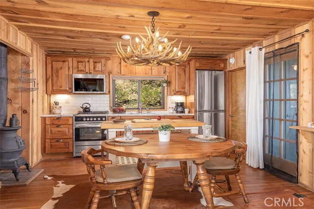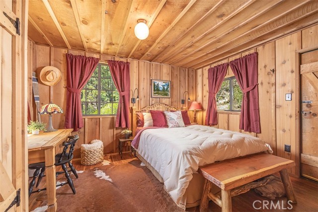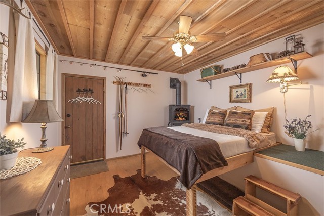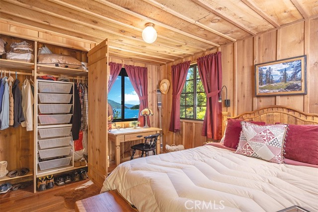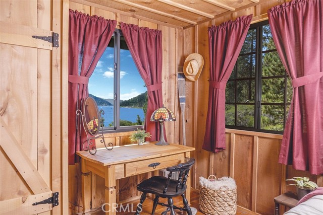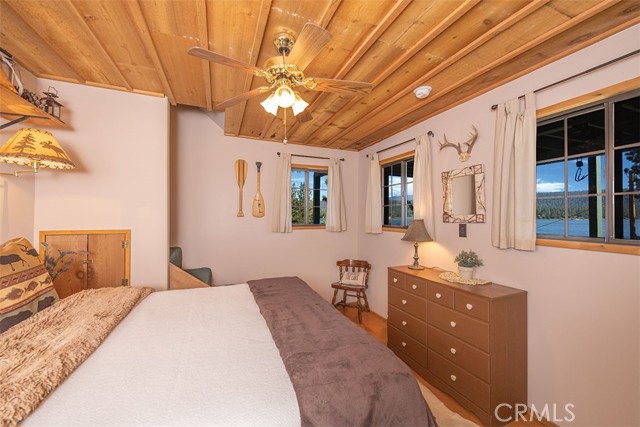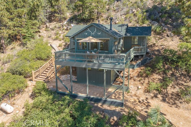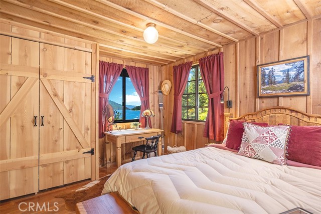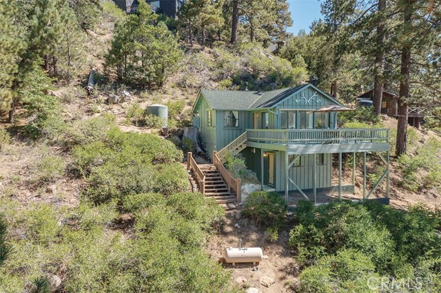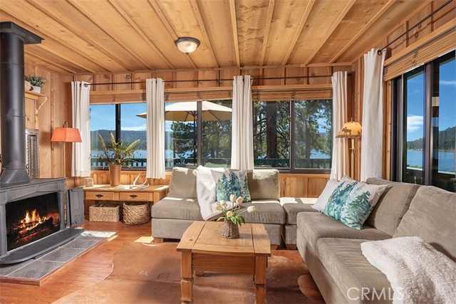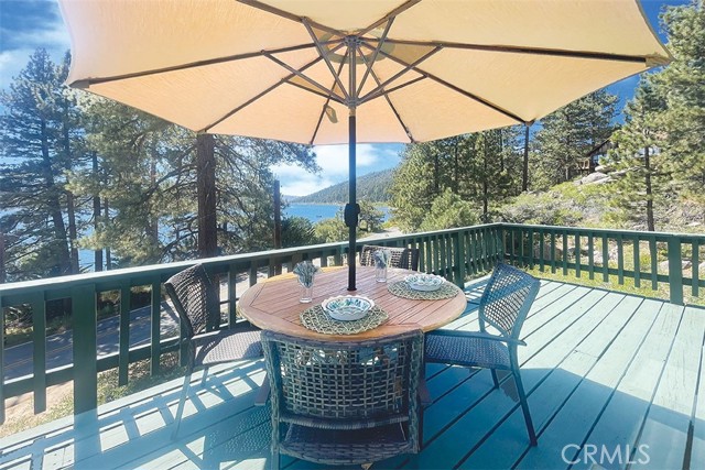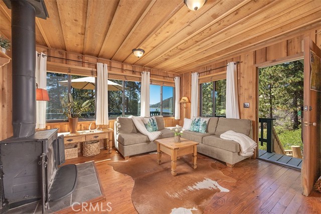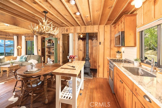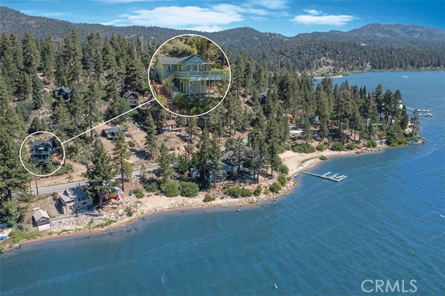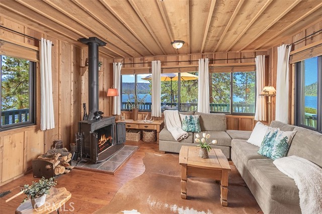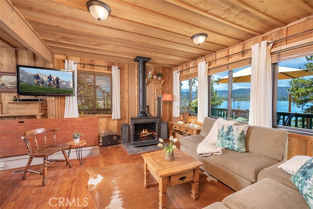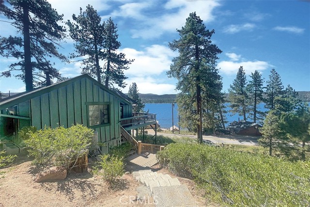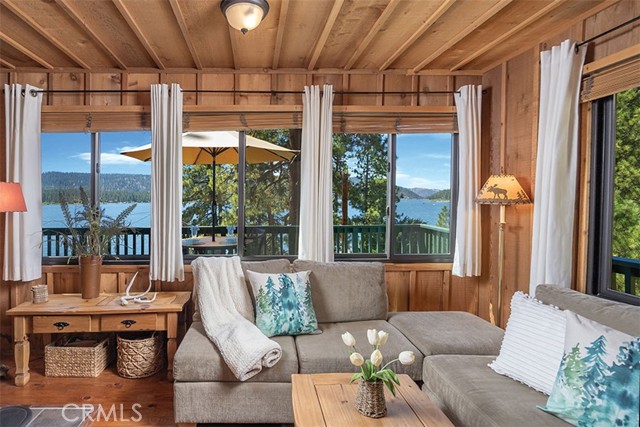 Immerse in the stunning beauty of the lake and the sights and sounds of nature away from city life. This Recreation Residence Cabin is a dream fulfilled for those passionate about owning a special Big Bear retreat. Featuring extraordinary panoramic views of the lake & mountains, nestled in a beautiful treed setting amid the amazing National Forest. Offering a place to truly relax & restore, experience coffee as the sun rises and the WOW factor of spectacular sunsets from the expansive wrap-around deck. This magical cabin was originally built in the 1920’s with wonderful board & batten wood interior details on the ceiling & walls. Rich in history with an artful balance of rustic charm & beautiful and well thought-out upgrades that include a new kitchen with quality Kraftmaid Alder wood cabinets, soft-close drawers, granite counter, pullout spice cabinet, stainless-steel sink & appliances, garbage disposal and a wonderful butcher’s-block work prep island. The cabin features a wood-burning fireplace/stove in the living room, a “decorative” pot belly stove in the kitchen & a propane stove downstairs. There are dual-pane windows throughout, a remodeled bathroom with a nice shower/tub featuring crisp white tile and custom chalk-painted vanity and a built-in storage cabinet. There are exquisite lake views from almost every window sure to leave you breathless with the certainty of how truly special this cabin is. Custom details like the primary bedroom's closet with built-in organization baskets & barn-style doors and the hand-carved wood divider further enhance this cabin’s magic. Additional upgrades in the past 6 years include a new composition shingle roof, the addition of insulation in the sub area, rain gutters and the home's exterior, decking, stairs and railings were carefully prepped, primed and painted. The downstairs area, used as a bedroom can be accessed from both the living room and a ground-floor exterior door. Affording year-round access and connected to a public sewer system, the cabin is located just west of Fawnskin village with the post office, general store, North Shore Cafe, Moose Lodge, boat launch & Captain John's Marina minutes away. Views, Location, Upgrades, Pride of Ownership & So Much More! Buyers please be aware that the purchase of a Recreation Residence Cabin does not include the land, cannot be used as a primary residence or short term rental and bank financing is not available. Come be transported by this cabin's "MAGIC"!
