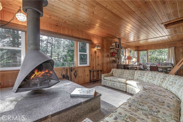 Discover your dream family getaway in this charming 1,440 sq. ft. cabin nestled on over half an acre of breathtaking treed property in Fawnskin! This classic one owner 2-bedroom, 2-bath retreat has an inviting open floor plan that seamlessly blends rustic charm with modern comforts. Fall in love with the vintage mid-century fireplace, perfect for cozy nights, and the authentic 1950's O'Keefe & Merritt working stove that adds a touch of nostalgia to your mountain culinary adventures. Recently updated with dual-pane windows, this cabin offers the best of both worlds a rustic escape with all the amenities you need for a comfortable stay. This one owner cabin has served up great family memories since 1955! Your family's mountain memories await in this idyllic woodland haven!
