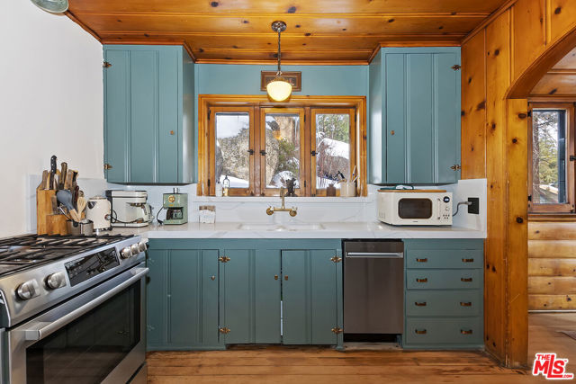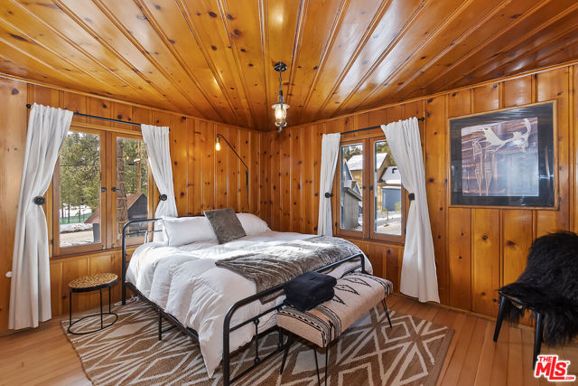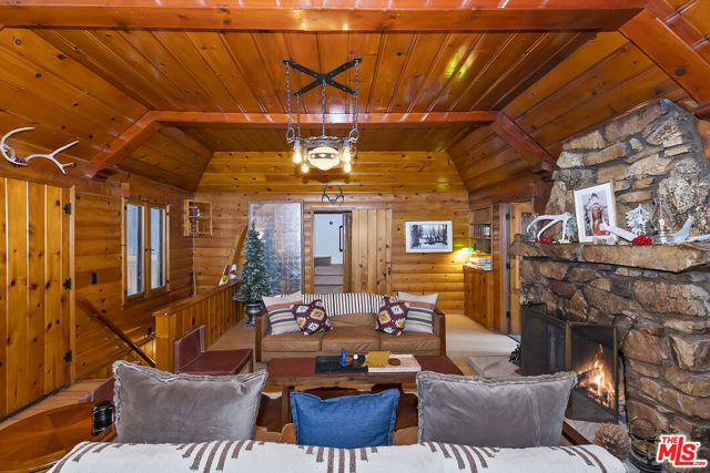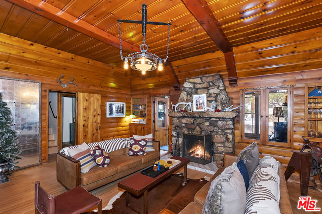Welcome to 39142 Sioux Dr, this prestigious Fawnskin property is an enchanting retreat located on a rare 16,993 SF parcel with a backdrop of surrounding mountains and lush treescapes. The quintessential Big Bear cabin is move-in ready, and fully upgraded for the perfect Mountain lifestyle. This immaculate, spacious cabin features refinished wood beamed ceilings and wood floors, multiple built-ins with wood detailing, antique light fixtures, and scalloped window frames. The open living room features a gorgeous native stone fireplace setting the tone and ambiance. The kitchen has been upgraded with new quartz countertops, beautiful brass hardware, a new gas line for the range, and all new appliances. An adjoining arched doorway leads you into a separate dining room that makes you feel like you are suspended in the pines as you entertain your guests. The kitchen also provides access to an enclosed mudroom with an updated laundry area offering 2 double stack washers/dryers. This mountain fully furnished home features four bedrooms, two 3/4 Baths and two bonus baths along with one bonus bedroom. The converted garage offers additional living space, including a gathering room. The covered front deck and stone walled patio is perfect for sipping your favorite beverage while enjoying the peaceful views. Some of the many upgrades include: a complete exterior overhaul, new bathrooms that feature sleek walk-in showers, new tile, new sinks, new toilets, new electrical lines, updated heating system to include addition of the second floor, and new landscaping. This property is multifaceted, whether you're looking for your own luxury mountain home, your home away from home, as well as investment potential with short term rental options. The home is currently a successful Airbnb with great built-in revenue. The massive lot size offers room for your cars, boat/trailer, RV and future projects. This location provides close proximity to the National Forest with numerous hiking trails, and is approximately 10-15 minutes to the slopes, and the downtown Village offering restaurants, shopping and entertainment. This is the mountain lifestyle you have been searching for.