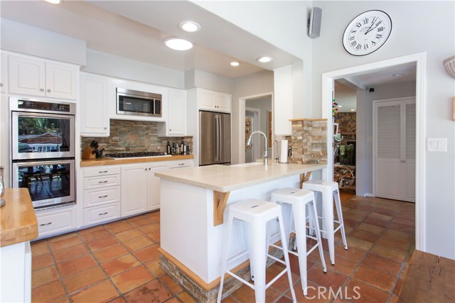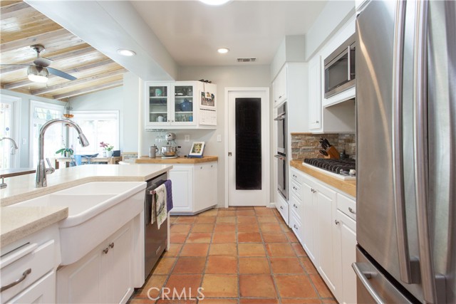 You will feel like you Stepped into the Mountains in this Adorable Home. Characterized by Rustic Charm and Modern amenities. Enjoy being surrounded by Nature in a Rural area of Fullerton, just Walking Distance from Award Winning Schools and Hiltscher Park/Fullerton Loop Recreational Trail Access. Work-from-home Ready and Convenient to Downtown. Features include Stamped Concrete Driveway and EV charging. Finished Garage with Built-in Cabinets and Professionally Applied Epoxy Floors, ideal for Workshop, Gym or Flex Space. Distraction-free Downstairs Studio with Separate Entry, Extensive Built-ins including 3 Workstations, Dedicated HVAC, Fridge, 3/4 bathroom and additional Storage Space. The Home Boasts an Open Floor Plan with great Flow and an Abundance of Picture Windows with Mature Tree Views. Enjoy High Beamed Ceilings and Cast-Iron Gas Stove in the Eat in Kitchen, with a Wall of Windows Overlooking the Hillside. Original Red Oak Hardwood Floors in the Living Room, Halls and Bedrooms. Terra Cotta Flooring in the Dining Room and Kitchen. Efficient Kitchen has Smooth Glide/Soft Close Cabinets with Slide-out Shelves and Butcher Block Countertops, Stone Accents, Breakfast Bar, Stainless Steel Appliances including Double Ovens. Wood Fireplace in the Living Room with Large Picture Windows with Treetop views. Dining Room leads to Wrap-around Deck, convenient for outdoor Cooking, Overlooking Front Yard Getaway with a Fountain and Propane Fire Pit for evening relaxation. Light and Bright Interior with Recessed LED Lighting and SolaTubes throughout. Newer Low-E Dual Pane Windows throughout. Quiet-Running Whole House Fan reduces Summer Cooling Costs. Separate Inside Laundry Room. Tankless Water Heater, top of the Line Novo Water Softener system, copper plumbing, and Under Sink 5-Stage RO Filter. and a 200 Amp Electrical Panel. Master Bath has a Claw Foot Tub with a Separate Shower. Each Room has its own Sliding Doors Leading to the Rear Yard. Two-Tiered Backyard, completely Fenced, with upper Level, Sporting Porcelain Tiled Spa Area and Grassy Space, and Lower Patio Tier for Enjoying the Irrigated Raised Bed Vegetable Gardens and Delicious Organic Oranges from your very own Mature Tree. Nature Lovers, Telecommuters, and outdoor enthusiasts Rejoice!