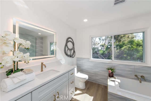 Bathroom Information | Bathtub, Shower, Shower in Tub, Closet in bathroom, Exhaust fan(s), Quartz Counters, Remodeled, Upgraded, Walk-in shower |
