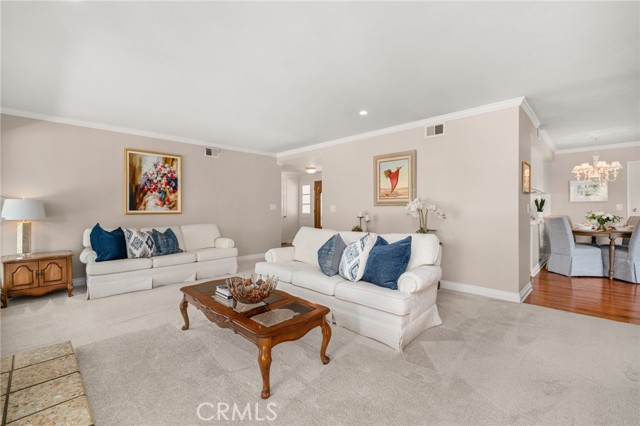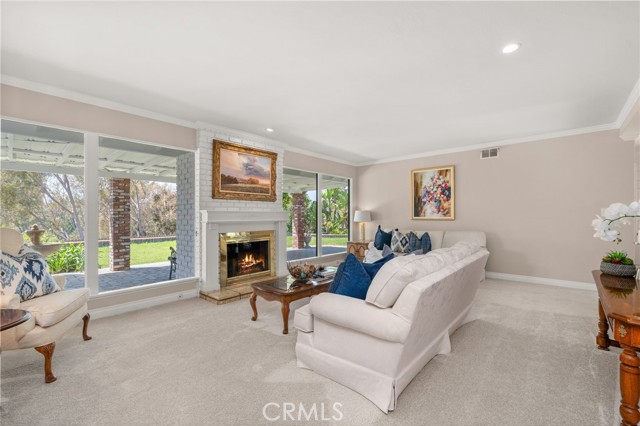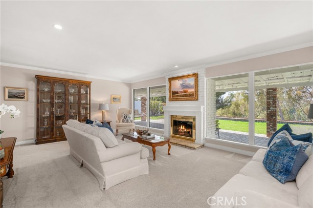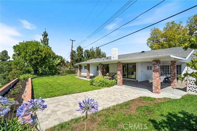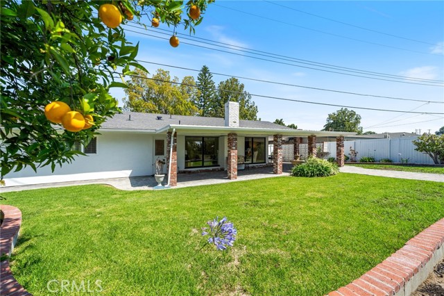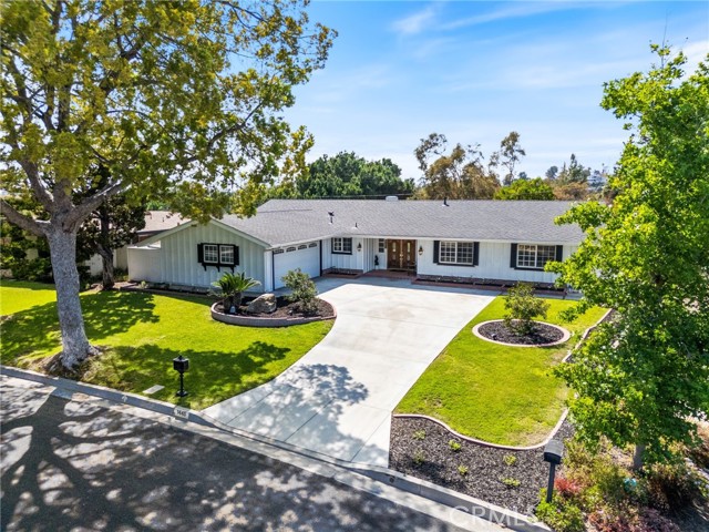 Opportunity awaits at this three-bedroom mid-century ranch home in spectacular Fullerton Hills on a secluded tree-lined cul-de-sac. This property has been well cared for by the same owner for many years. Exterior features include a well-maintained landscape, many mature trees, and a fruit bearing orange tree. A wrap around covered patio is ideal for relaxing entertainment with family and friends. The interior features a large living room with floor to ceiling windows and a brick fireplace with a connecting family room/dining area opening to a pleasant light and airy kitchen. Completing the floor plan are three generously sized bedrooms including a primary bedroom with two oversized closets and an en-suite bathroom, an additional hall bathroom with a dressing table, and a kitchen workspace. A roomy 2-car attached garage with washer/dryer hook-up and room for storage/workspace is a great convenience. The patio behind the garage is perfect for a dog run leading to a peaceful back yard. This home has excellent access to Hillcrest Park, Coyote Hills Golf Course, The Summit House Restaurant, Downtown Fullerton, and entertainment you are sure to enjoy.