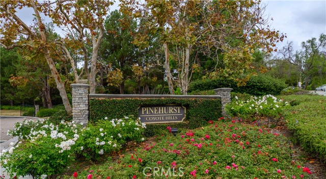 This immaculate 3 bd/2.5 bath home in the prestigious Pinehurst at Coyote Hills neighborhood is Features include a large downstairs half bath convenient for guests; two story ceilings at entry way and living room for a grand entrance with a wall of windows that flood the house with natural light; formal living and dining areas as well as a separated family room complete with gas fireplace for cozy and cooler evenings; family room is open to the updated kitchen, fully equipped with center island, recessed lighting, granite counters, newly cabinets, gas cooktop, Additional features include central heating and AC; generous master suite with separated soaker tub and shower, two walk in closet, and vaulted ceilings; two spacious guest bedrooms upstairs with additional guest bath up; direct garage access to interior; large interior laundry room with utility sink, lovely rear yard with a wrap around patio with slatted cover to let the sunlight beautiful views of the hills and trees beyond the wrought iron fence line; and a cul-de-sac location just steps from the HOA pool & spa in a meticulously maintained and gated community that also includes beautiful landscaping, ideal location in a highly desirable school district and has easy access to Coyote Hills Golf Course, Rolling Hills Park, public transportation, the Fullerton Loop trail system, the Brea Mall, & great restaurants.