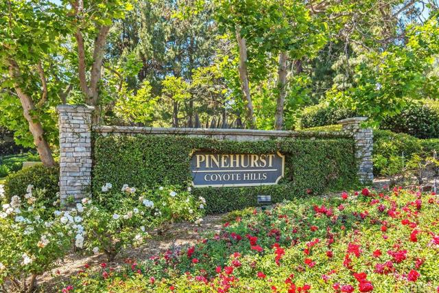 **PRIVATE OASIS HOME** Rarely available in the prestigious and highly sought after gated community of Pinehurst Coyote Hills. As you enter this stunning home you will be impressed with the 20-foot-high ceilings in the entry and living rooms, along with the abundance of natural light coming from the large picture windows. This beautiful 3 bedroom, 2.5 bath home has so many upgrades; granite countertops, custom wrought iron stair rails, crown molding, recessed lighting, and designer paint throughout. The chef's kitchen has all stainless steel appliances, center island, cabinets with pull-out drawers, and french doors (with invisible screens) that open to the back patio & yard. Upstairs you will find a spacious primary bedroom, an enormous en-suite bathroom; featuring a walk-in shower, a separate soaking tub, dual vanities and a large walk-in closet with extensive organizers. A wonderful interior laundry room & utility sink; includes conveyed Bosch front loading washer & dryer. Even the garage has been upgraded with custom wall cabinetry for added storage & epoxy flooring. The backyard is a work of art with lush tropical landscaping, a rock river-bed & custom arched wood bridge that crosses to a gorgeous outdoor fireplace & seating area. This fantastic home sits behind the 4th tee-box of Coyote Hills Golf Course. Newly upgraded HOA Pool, Spa & BBQ area. Close to Award Winning schools & the prestigious Troy High-School. WELCOME HOME!