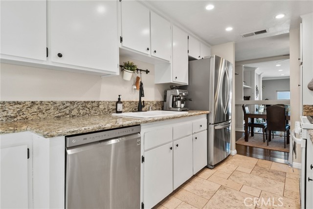 Welcome home to this stunning tri-level condo located in the heart of Fullerton, CA! Boasting 3 bedrooms and 3 bathrooms, this 1404 square foot home is perfect for families or individuals who enjoy city living. You will love the LED recessed lighting throughout the home, creating a modern and welcoming atmosphere. The HVAC system was newly installed in 2021, ensuring that you stay comfortable all year round. The dual pane windows and sliders throughout the home come with a double lifetime warranty, providing peace of mind for years to come. The bathrooms have been beautifully updated, and the kitchen features granite countertops, making it perfect for those who love to cook. Hardwood floors add warmth and sophistication to the home, and the two fireplaces located in the main living area and primary bedroom will keep you cozy on chilly nights. Enjoy the outdoors with a large private patio in front, an additional patio off the kitchen, and a balcony off the primary bedroom. The two-car garage provides ample space for your vehicles, including tons of additional storage space. Community amenities include three pools and a spa, providing the perfect place to unwind and relax. The condo is located just one mile from Cal State Fullerton and four miles from downtown Fullerton and the train station, making it easy to get around town. Shopping and dining are just a short walk away. Don't miss out on the opportunity to make this beautiful condo your own!