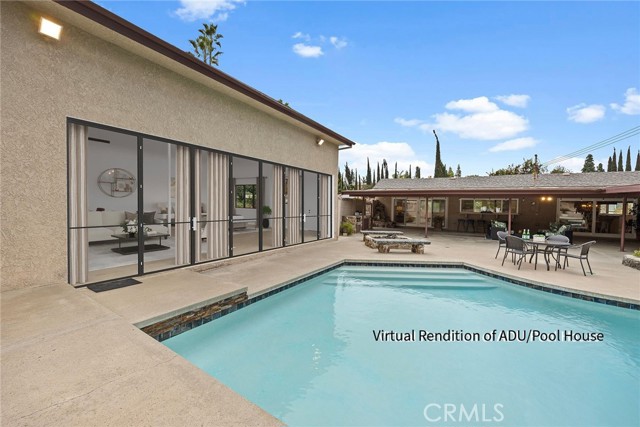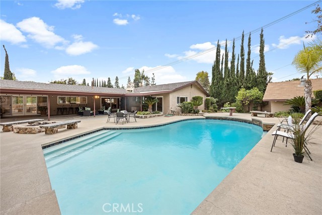 One of a kind SINGLE-STORY POOL home with potential POOLHOUSE /ADU possibility, nestled in a quiet CUL-DE-SAC in the prestigious Sunny Ranch neighborhood. Oversized great room with vaulted ceilings, custom built-ins and wet bar perfect for hosting/entertaining, opening out to a wonderfully private backyard with sparkling pool and cozy firepit for a peaceful retreat. Spend balmy evenings dining al fresco under extra wide covered patio with built-in BBQ station and multiple seating areas, making a true entertainer's dream. This charming home presenting a delightful curb appeal boasting a sweeping driveway plus an exceptionally magnificent garage for parking up to 8-cars, boats or RV parking, already equipped with half bath, sink and water heater, is ready for your imagination to suit various lifestyles and ideas. Prime location nearby multitude of shopping and dining options, just moments away from Laguna lake, Fullerton loop (hiking, biking, equestrian) trails, golf courses and St. Jude hospital, zoned for award-winning Laguna Road Elementary, Parks Jr. High and Sunny Hills High School.