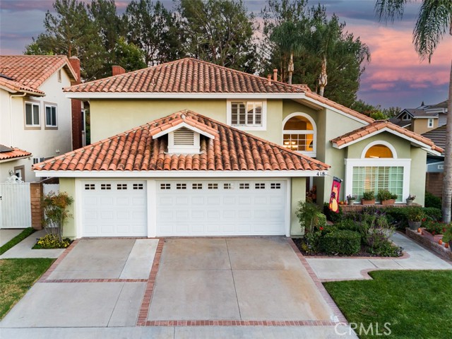 Honey Stop the Car!! This executive home features open floor plan, tons of natural light, two story high vaulted ceilings & wood shutters throughout. As you step inside you’re greeted in the sunken formal living room & dining room, both offering a great space for entertaining guests. As you make your way to the rear of the home you’ll find a chef's delight with a dreamy custom remodeled kitchen with all upgraded high-end Jenn-Air appliances featuring a 42" wide built-in French door fridge, micro drawer, 30” warming drawer, 30" wide double ovens, 6 burner gas cook top featuring a custom hand painted wine shelf, cheese and grape mural behind the stove top as the back-splash. he chef’s kitchen boast ample counter space and a very large center island with casual dining seats for two and offering additional serving and prepping areas. To top it off are beautiful granite counter tops throughout and with fully custom stylish alder cabinets. The kitchen also has an adjoining wet bar with a new wine cooler and a stainless steel sink. the family room is also right off the kitchen and has a lovely fireplace. The family room, living room and dining room all flow freely into the kitchen area which is perfect for large gatherings with friends & family. Rounding out the fully tiled first floor is a laundry room with a built in sink and ample counter space, generously sized bedroom suite which offers access to the downstairs full bathroom. Making your way upstairs you’ll find extra wide stairway covered with newer carpet and at the top of the stairs is the over-sized master suite. The master suite also offers newer carpet, fireplace, wood shutters, vaulted ceilings and a brand new fully remodeled and customized bathroom. The master bathroom has a large walk-in closet & side closet, double sinks, and a separate oversized shower. Additionally upstairs are 2 more good sized guest bedrooms each of which have new carpet along with a Jack and Jill full bathroom. Other upgrades not already mentioned include a New Lennox HVAC system, newer water heater, new exterior paint, upgraded attic insulation, newer dual pane windows and slider, new garage door opener. This home is situated on tranquil and relaxing street very close to the community park and is zoned for Fullerton High School district. Don’t miss this opportunity to purchase your new forever home.
