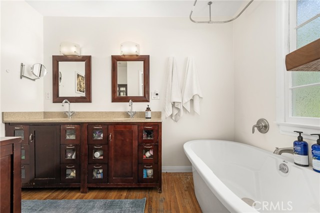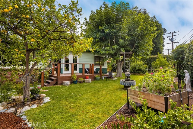 Welcome to your dream home in Fullerton! This exceptional single-story residence boasts three spacious bedrooms and three bathrooms, designed for both comfort and style. As you enter, you’ll be greeted by original wood plank flooring and touches of character that flow throughout the open and airy floor plan. This house comes with a new roof and a nearly new HVAC system. The galley kitchen offers lots of space for cooking with two large skylights and access to the garden from the kitchen. The expansive living areas are ideal for relaxing or entertaining and the large dining area looks over the lush garden with french doors out onto the deck. The backyard is a private paradise and a gardener’s dream, with a high-producing mature lemon tree, lime tree and several raised beds to grow your own food. An outdoor patio for eating and lounging make this garden ideal for a serene retreat or entertaining with friends. The large grassy area and delightful treehouse are perfect for endless hours of children’s play. Enjoy the large private parking area, providing ample space for up to 7 cars, ensuring convenience and security. A gorgeous 600 foot studio is attached to the home. It is currently used as a gym and artist space, but could be converted into an ADU for additional family members or even a rental income or converted back into a garae, it has climate control and storage. The side yard with its own entrance, also has potential for an additional ADU/tiny house providing a second revenue stream should you choose, or left as-is for additional gardening. This home is part of a community renowned for its charming neighborhood traditions like the Christmas ‘sparkle balls’. Experience the warmth and vibrancy of a community that comes together for seasonal celebrations and maintains a welcoming atmosphere year-round. This home, just 0.7 miles from Downtown Fullerton combines tranquility with accessibility, offering proximity to top-rated schools, parks, and vibrant local amenities. Don’t miss out on the opportunity to own this Fullerton gem—schedule a tour today and discover the perfect blend of a home filled with warmth, style, functionality, and community spirit!