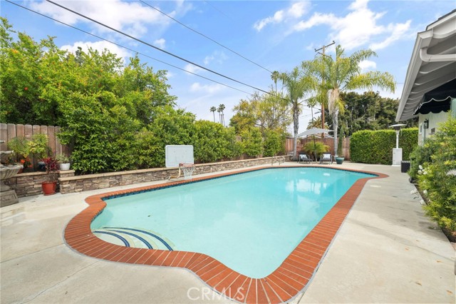 Nestled in one of Fullerton's most sought-after neighborhoods, this single-story entertainer's dream presents an enticing opportunity for prospective homeowners. With a spacious 2,103 square feet, this cul-de-sac home features four bedrooms and three bathrooms, providing ample space for comfortable living. The heart of the home is its beautifully designed kitchen, complete with an island and abundant storage, perfect for hosting gatherings. Adjacent to the kitchen is a sizable dining room, leading to an outdoor covered patio adorned with a stone fireplace, built-in BBQ, prep countertop, sink, and a built-in fridge—creating a comfortable and cozy space for year-round entertainment. The allure of outdoor living extends to the expansive pool area. Sunlight floods through wall-to-wall sliding doors in the dining and living areas, enhancing the home's ambiance. Down the hallway, four generously sized bedrooms await, including a primary suite with multiple closets, an ensuite bathroom featuring dual sinks, a shower, separate tub, and backyard access. The guest bathroom has been tastefully remodeled, ensuring comfort for visitors. An expanded, nicely drywalled and finished two-car garage provides ample storage as well as the opportunity to use the additional space for a home office, workshop, game room, etc. Situated in a highly sought-after neighborhood, residents enjoy easy access to major highways, top-rated schools, hospitals, local parks, shopping centers, dining establishments, and entertainment options. Award-winning Hermosa Elementary, the Puente Bike Path, and various amenities are within walking distance, making this home an irresistible choice for discerning buyers seeking the quintessential Fullerton lifestyle.