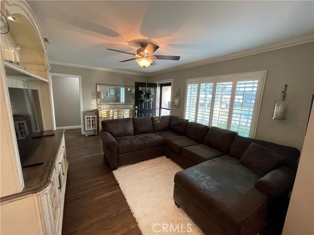 Beautifully upgraded turn-key home on large cul-de-sac lot in the heart of Fullerton! As you pull up to this well kept single story home, you will be sure to notice the BRAND NEW exterior paint and front yard landscaping that includes new sod, white roses, and automatic sprinklers. Upon entering the home, you will enjoy lots of upgrades including real red oak wood floors, four inch baseboards, crown molding, two-toned paint, shutters, and ceiling fans throughout! The kitchen has been fully remodeled and showcases gorgeous cherry cabinets, quartz countertops with beveled edges, a travertine backsplash, a large farmhouse sink, and stainless steel appliances. All of the bedrooms have mirrored closet doors too. The natural light throughout the home makes it feel larger and more open. This home also features newer windows, a newer roof, a new water heater, and a water softening system. In the oversized backyard, you will appreciate the large alumawood patio cover with a ceiling fan, and all of the mature fruit trees and grape vines. There is plenty of room to build that pool or casita that you've always dreamed about! The storage shed is also included with this home for your convenience. Located just minutes from major freeways, shopping, restaurants, and downtown Fullerton, this home won't last long!
