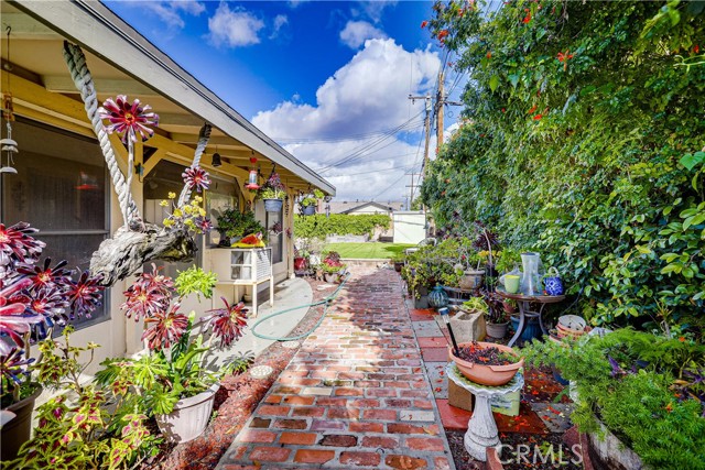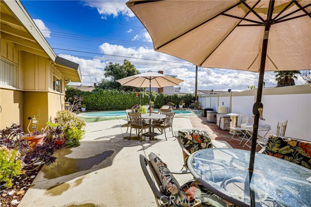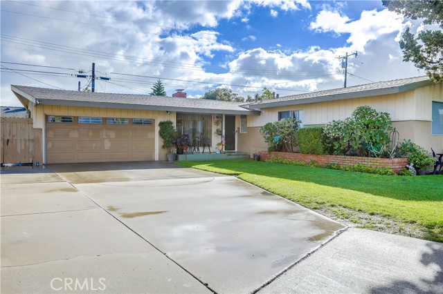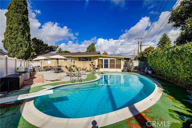 Welcome to this wonderful single story pool home situated at the end of a cul-de-sac in a desirable Garden Grove neighborhood. This spacious 1597 square foot home features 5 bedrooms and 2 bathrooms. The large 9306 square foot lot provides room for RV parking and the possibility to build an ADU. As you enter the home you’ll notice the charming hardwood floors that lead to the dining room with a large stone fireplace and the living room with access to a large enclosed patio providing additional living space. To the left of the front door you’ll come to the kitchen with a beautiful brick wall, an eating area, direct access to the garage with laundry and large windows that allow for a wonderful view of the neighborhood. To the right of the front door you’ll notice a carpeted hallway that leads to the five bedrooms, all with ceiling fans. The master bathroom features a large shower and can be accessed from the bedroom and from the hallway. The second bathroom features a bathtub and a door that leads to the backyard, perfect for access when using your sparkling pool. In addition to the pool and diving board the backyard also features a large grassy area and raised flower beds for planting your favorite fruits and vegetables. This home has been well maintained and is conveniently located near award winning schools, parks, shopping centers, churches, temples and freeways.