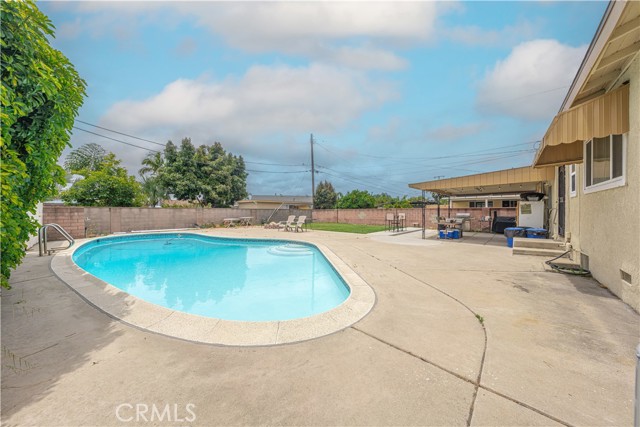 Welcome to this well-maintained, light and bright home which boasts 4 bedrooms, 2 bathrooms, and 1,269 sq. ft. of living space on a large 8,580 sf. Lot that provide plenty of options for possible ADU while still have the luxury of the pool. The kitchen is spacious, offering plenty of storage and an eat-in area. Dual pane windows through out with beautiful shutters up front. The four bedrooms provide flexibility, allowing for traditional use as bedrooms or as a home office or hobby room. Sit back and relax in the sparkling pool and a covered patio area providing numerous possibilities for ideal California living. The pool was replastered and tiled in the last 4-5 years. A new A/C condenser has been recently installed just a month ago. The fantastic location is just 1 mile from downtown Main Street, Garden Grove, 2 miles from the Outlets at Orange, and within walking distance of schools.