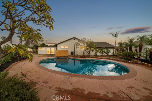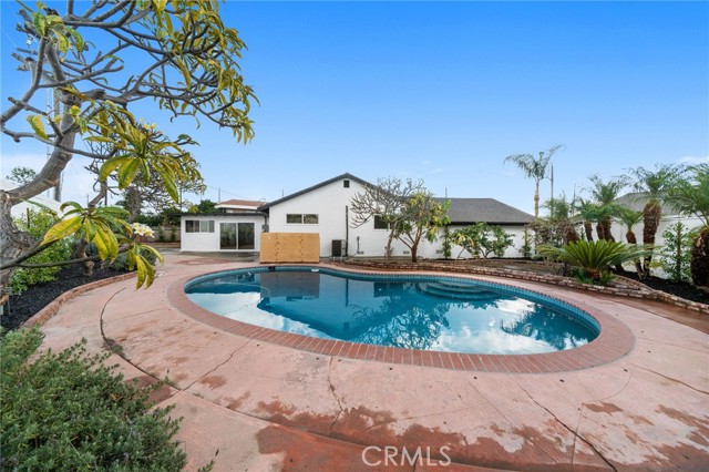 A perfect blend of modern living and comfort at 12242 Georgian St, Garden Grove, CA 92841. Nestled in a peaceful cul-de-sac, this stunning property offers a generous living space of 2,353 sqft on an 8,509 sqft lot, ideal for those who cherish spacious environments. The house has undergone extensive renovations, including new plumbing, an upgraded electrical panel, and stylish waterproof laminate flooring throughout. The charm of quartz countertops complements the new kitchen, while the security of a new roof adds peace of mind. The property features state-of-the-art recess lighting and brand-new fixtures, enhancing the modern feel. Equipped with new appliances and energy-efficient double-pane windows, it ensures a blend of luxury and practicality. Step outside to find a beautifully re-plastered pool, surrounded by new ficus trees for added privacy and an array of fruit trees including mango, lime, fig, lemon, and guava. The R3 zoning offers the potential for adding multiple ADUs, making it a valuable investment. Inside, the layout includes a welcoming living room, two cozy bedrooms with a bath, and a primary suite complete with a brand-new tub and shower. A spacious den is a perfect entertainment area, with a conveniently placed washer and dryer. This home is not just a residence but a lifestyle offering waiting for you to make it your own.