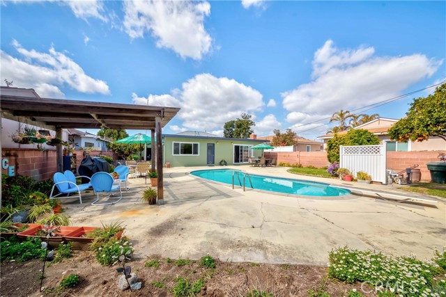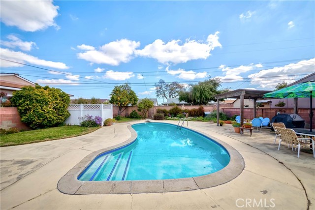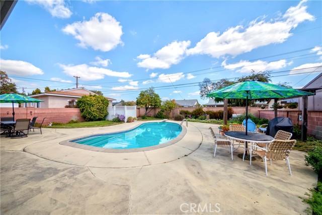 Come see this New Listing in this desirable neighborhood in Garden Grove. This wonderful 4 Bedroom home sits on a Large lot (8,100+ sqft) with a gorgeous swimming pool, plenty of backyard space for the kids to run around & play, host BBQs for your family & friends. There is a large driveway with plenty space for your cars or even an RV. You're minutes away from the 22, 5, 57, and 405 freeways. You're also a few minutes from Disneyland and a quick drive to Knott's Berry Farm. As you walk into the naturally lit living room, you'll feel right at home. It leads right into the updated kitchen where you can cook and host dinner for family and friends.