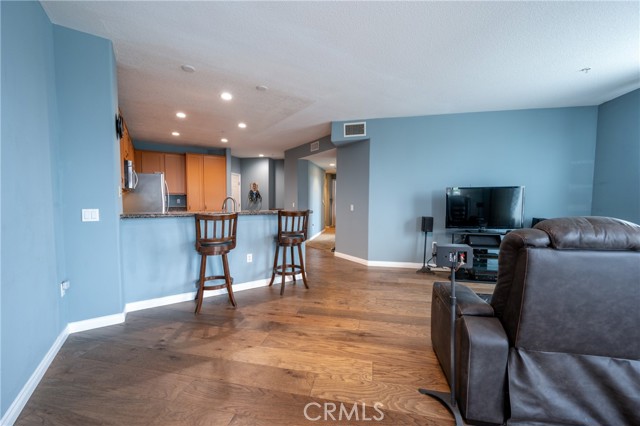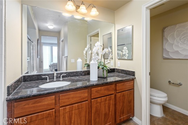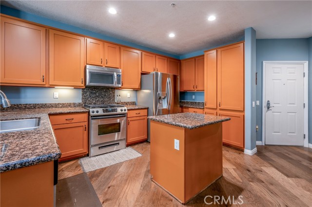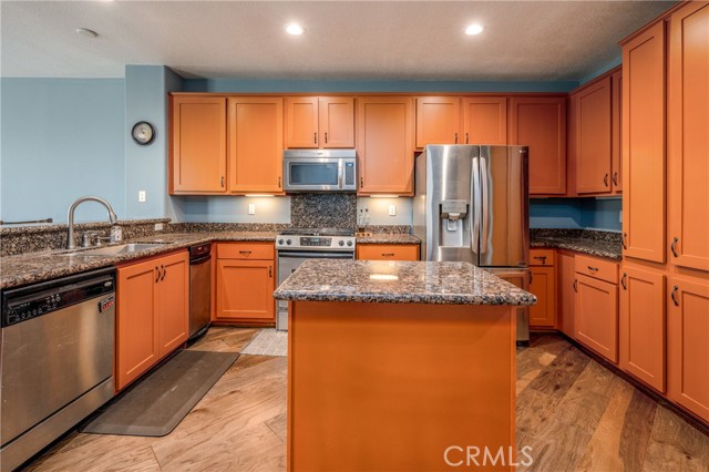 Welcome and Embrace Metropolitan Living in Central Orange County. This corner unit allows you to enjoy city light views and the colorful Disneyland fireworks directly from all 3 bedrooms, living room and outdoor balcony. It's highly desired floor plan offers a functional-spaced kitchen with a center island that lends additional work space or table for quick everyday meals. Stainless steel appliances complements the kitchen's newly-installed cabinetry. Clean lines neatly separate all other spaces for comfort and easy decorating. The primary bedroom extends to a balcony/porch that allows homeowners for city light viewing. 2 additional secondary bedrooms with full-sized closet space also has direct city views. Kitchen and bathroom countertops are in uniform granite. Both bathrooms are fitted with shower over tub for a restful and relaxing retreat. The inside laundry can accommodate a side-by-side washer and dryer, tucked away in a separate closet. The interconnected living and dining area extends to a covered balcony for outdoor seating. Wood flooring combined with carpeting, an inside laundry and a brand new Heating and Airconditioning System, ensures a comfortable accommodation. The outstanding community amenities features a sparkling pool & spa, BBQ area, fire pit, a clubhouse with a full service kitchen and a fully outfitted fitness room that's regularly maintained and sanitized. Right around the community's corner is a park for dog walking. The monthly HOA pays for trash, water and gas. The unit comes with 3 assigned parking spaces and a storage cage to secure seasonal or occasional bulky items. Top this with ideal Orange County location, with easy access to major freeways, dining, shopping, entertainment and employment. Discover the vitality and convenience of City Living!