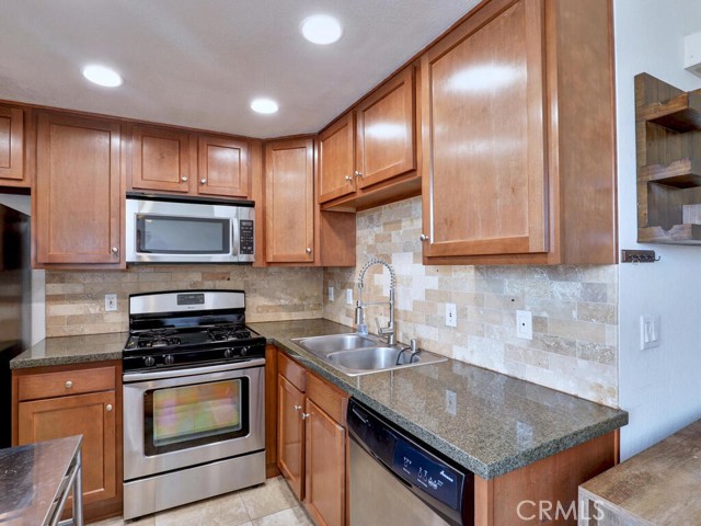 Welcome Home To This Awesome Condo! It May Have One Of The Best Locations In The Complex. Located Directly Above It's Own Garage And North Facing, This Unit Only Shares 1 Wall With The Neighbor. Very Private And Well Maintained, This Is An Excellent Purchase For A 1st Time Home Owner Or Empty Nester. Enter At The Second Level Into A Large Living/Dining Area With Vaulted Ceilings, Gas Fire Place, Built In Dry Bar. Nicely Remodeled Kitchen Is Tucked In Behind And Has Plenty Of Cabinets, Quartz Counter Tops, Stone Subway Tile Back Splash, Recessed Lighting, Stainless Appliances and Brushed Nickle Hardware. Stackable Washer/Dryer Stay. 2 Master Bedrooms! Both With Their Own Private Balcony/Patio Area. Both Rooms Are Generous Sized With Ample Mirrored Wardrobes. This Gated Community Has Running Streams and Ponds Through Out, Very Peaceful, Plenty Of Parking And Is Nicely Maintained. There Are 2 Pools, A Jacuzzi and Club House, Association Pays For Water, Trash, Sewer. Pets Are Allowed, But Please Check With Association For Any Restrictions. It Is Close To Freeways, Shopping and Community Entertainment. Thank You For Showing!