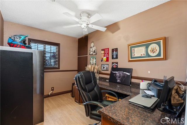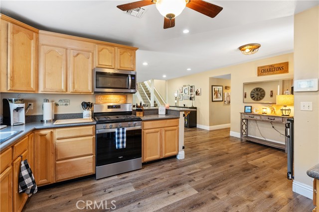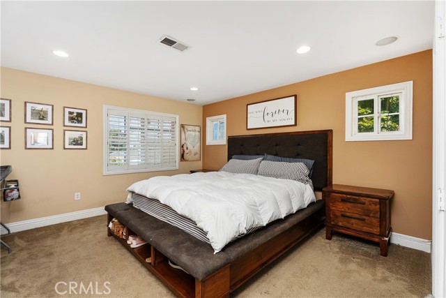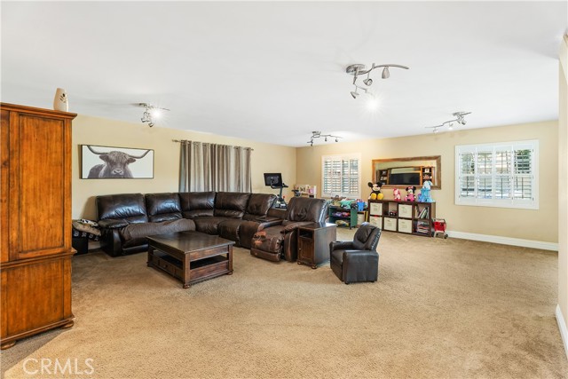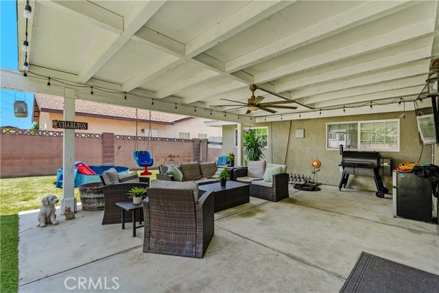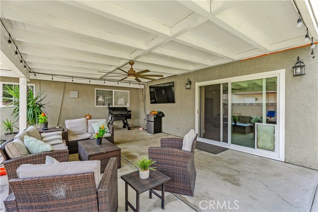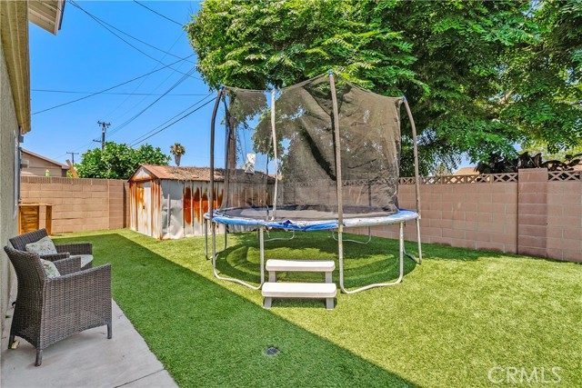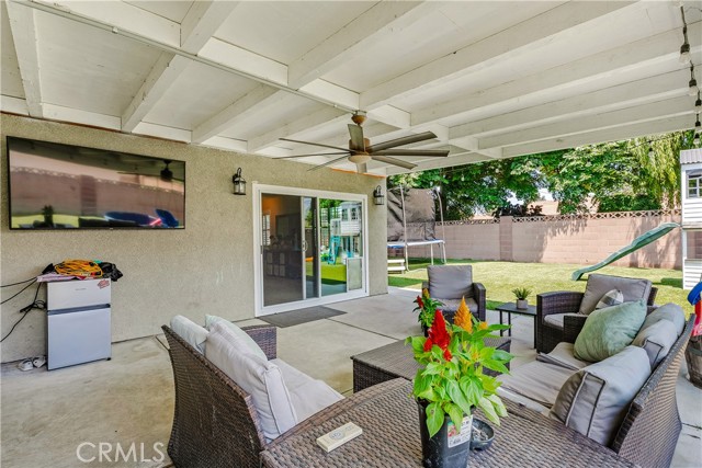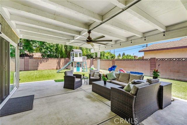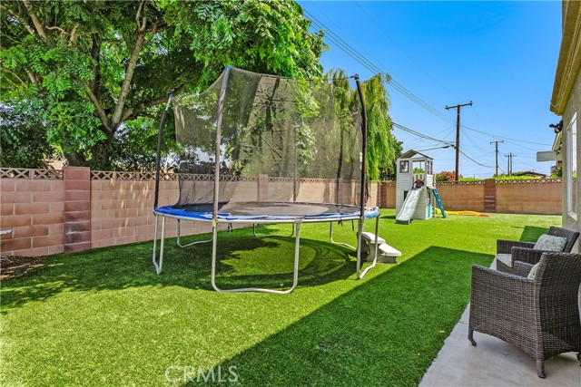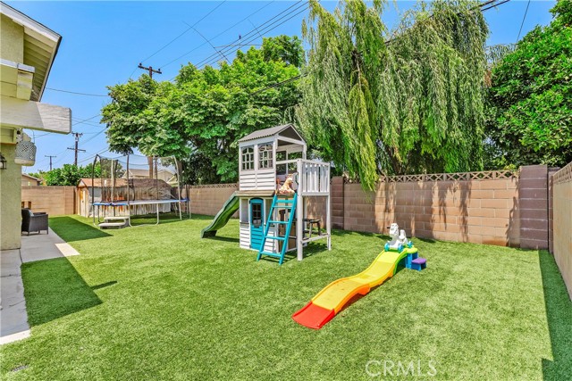 Fantastic West Garden Grove Eastgate home located on a cul-de-sac street and sits on an oversized lot! . The approximately 2,318 square foot property features an open-concept layout that seamlessly integrates the main living areas. The home boasts four bedrooms, including a generous primary suite and 2.5 bathrooms. The primary suite showcases an office/den area, a large walk-in closet, and a sizable bathroom with a shower and jetted tub. The additional three bedrooms provide ample space and flexibility. The remodeled kitchen, with its newer appliances and granite countertops, flows effortlessly into the large dining area and great room, creating a cohesive and inviting atmosphere. The great room's sliding glass doors lead to the private backyard, which features artificial turf and a covered patio with a ceiling fan, offering a practical and visually appealing outdoor oasis. The first-floor office, complete with a built-in desk, provides a dedicated workspace or study area. Complementing the interior's functionality, the low-maintenance backyard with its artificial turf presents a hassle-free and aesthetically pleasing outdoor space for relaxation and entertainment. The property also features two sheds, one of which is equipped with air conditioning, adding to the overall convenience. Enhancing the home's efficiency and sustainability, the property benefits from a SunRun solar system, helping to keep electricity costs manageable. The attached two-car garage with a large driveway, capable of accommodating an RV, offers additional convenience. Situated in close proximity to top-rated schools, including Enders Elementary, Bell Intermediate, and Pacifica High School, this home presents an attractive option for those seeking a well-rounded living experience.